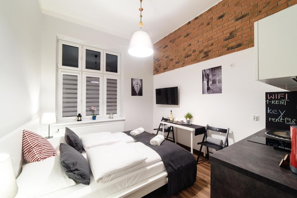 2 Nights Apartments, en Cracovia, se sitúa a pocos minutos de Opera Krakowska y Jardín botánico de la Universidad Jagellónica. Este complejo de apartamentos se encuentra cerca de Plaza del mercado principal y de Castillo de Wawel. Reserva una de las 24 habitaciones con cocina, frigorífico y placa de cocina, y disfruta de una estancia inolvidable. La conexión a Internet wifi gratis te mantendrá en contacto con los tuyos; también podrás ver tu programa favorito en el televisor con canales por cable. Entre las comodidades, se incluyen hervidor eléctrico, además de un servicio de limpieza disponible de forma limitada. Se ofrece servicio de transporte al aeropuerto (ida y vuelta) de pago (disponible las 24 horas).