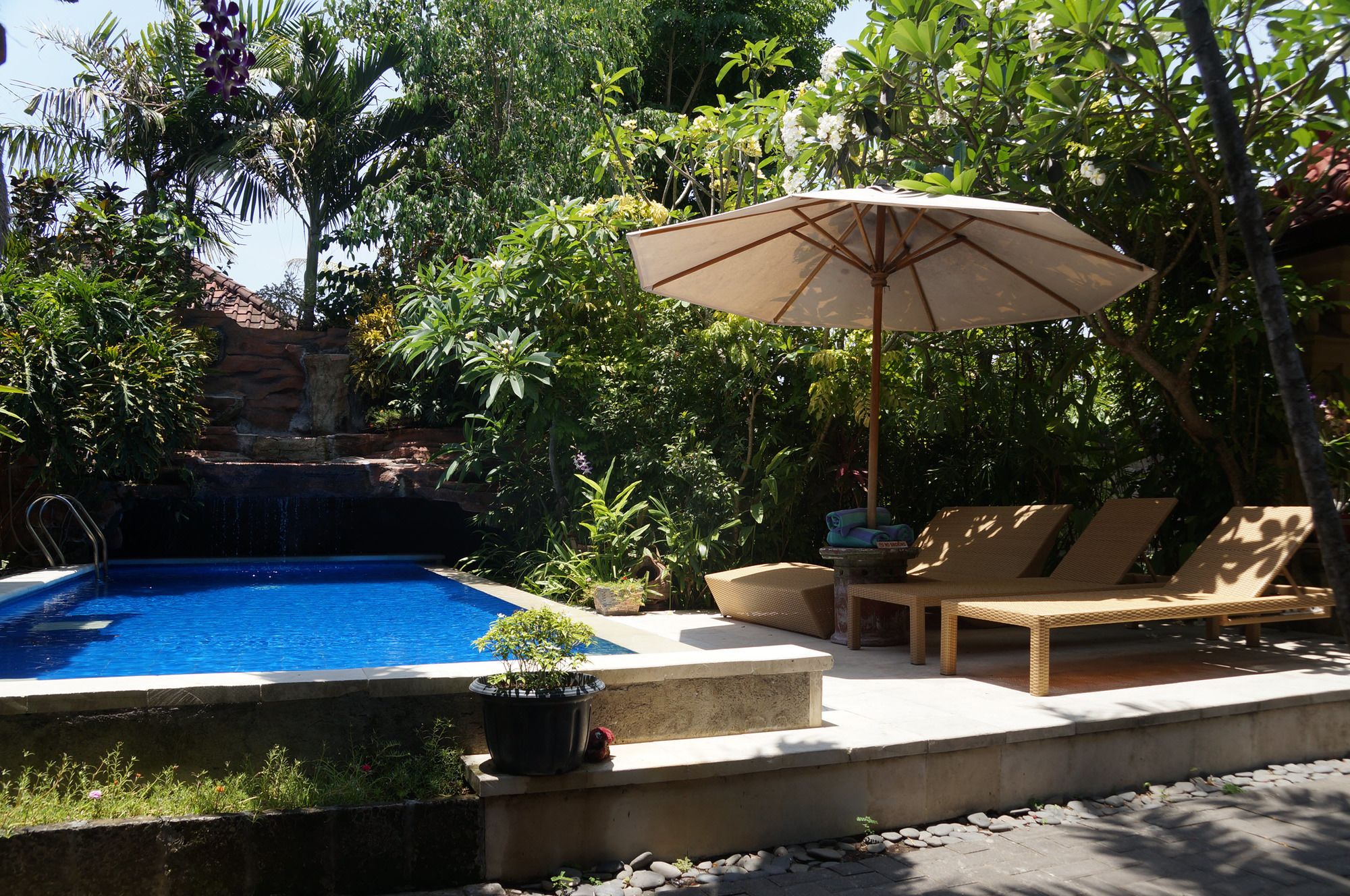 Si decides alojarte en Aahh Bali Bed and Breakfast, te encontrars en una fantstica zona de Jimbaran (rea de Jimbaran Bay) y estars a menos de diez minutos en coche de Centro de convenciones internacional de Bali y Centro comercial Bali Collection. Adems, este bed and breakfast se encuentra a 2,4km de Playa Jimbaran y a 8,1km de Playa de Nusa Dua.Recibe los cuidados que te mereces gracias al servicio de masajes o aprovecha instalaciones recreativas como una piscina al aire libre y muchas ms. Se ofrece adems conexin a Internet wifi gratis, servicios de conserjera y servicio de canguro (de pago).Tendrs un centro de negocios, tintorera o lavandera y atencin multilinge a tu disposicin. Pagando un pequeo suplemento podrs aprovechar prestaciones como servicio de transporte al aeropuerto (ida y vuelta) de pago y aparcamiento sin asistencia gratuito.En Aahh Bali Bed and Breakfast tienes un restaurante a tu disposicin para comer algo. Se ofrece un desayuno a la carta todos los das de 7:00 a 10:00 con un coste adicional.Te sentirs como en tu propia casa en cualquiera de las 3 habitaciones con aire acondicionado. Mantn el contacto con los tuyos gracias a la conexin a Internet wifi gratis. El cuarto de bao est provisto de ducha. Entre las comodidades, se incluyen caja fuerte y escritorio, adems de un servicio de limpieza disponible todos los das.