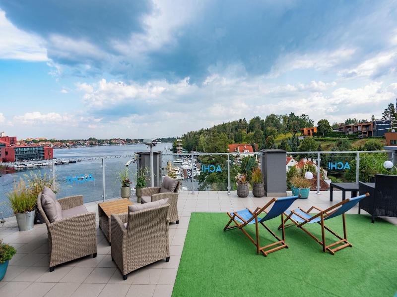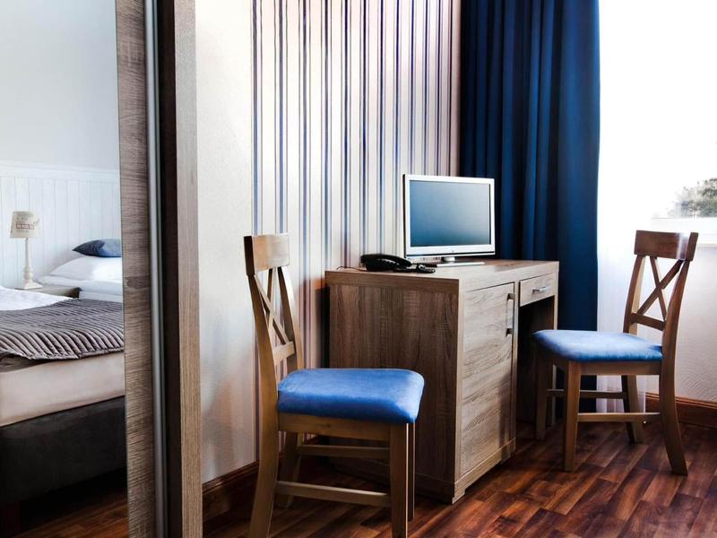 Al alojarte en Ach Mazury Stanica Mikołajki en Mikołajki, estarás en primera línea de playa, a 15 minutos a pie del lago Talty y de la Iglesia Luterana de la Santísima Trinidad. Este hotel de playa se encuentra a 1, 2 km del Museo Polaco de la Reforma y a 1, 4 km de Sailors' Village. Aprovecha las opciones de ocio, como el alquiler de bicicletas, o disfruta de las vistas desde la terraza en la azotea y el jardín. Entre los servicios adicionales de este hotel se incluyen wifi gratis, asistencia turística (adquisición de entradas) y un área de pícnic. Tendrás conexión a Internet por cable gratis, un centro de negocios abierto las 24 horas y consigna de equipaje a tu disposición. Puedes solicitar un servicio de transporte al aeropuerto (ida y vuelta) de pago, y hay un aparcamiento sin asistencia gratuito disponible. En Ach Mazury Stanica Mikołajki, podrás disfrutar de una deliciosa comida en el restaurante. Se sirve un desayuno bufé gratuito todos los días de 8:00 a 10:30. Te sentirás como en casa en una de las 26 habitaciones con frigorífico y televisión de pantalla plana. La conexión a Internet por cable y wifi gratis te mantendrá en contacto con los tuyos, y en la televisión por satélite tendrás entretenimiento a tu disposición. El baño privado con ducha está provisto de artículos de higiene personal gratuitos y secadores de pelo. Entre las comodidades, se incluyen caja fuerte y escritorio, además de un servicio de limpieza disponible de forma limitada.