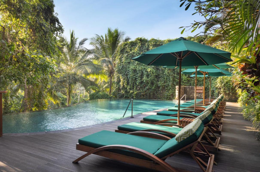 El Adiwana Unagi Suites, situado en Ubud, a 1,9 km del palacio de Ubud, ofrece alojamiento con piscina al aire libre, aparcamiento privado gratuito, jardín y terraza. Este complejo de 4 estrellas alberga un bar. Hay recepción 24 horas, servicio de habitaciones, servicio de enlace con el aeropuerto y WiFi gratuita en todas las zonas. Las habitaciones del complejo están equipadas con aire acondicionado, zona de estar, TV de pantalla plana vía satélite, caja fuerte y baño privado con ducha, secador de pelo y artículos de aseo gratuitos. Todas las habitaciones tienen hervidor de agua, mientras que algunas habitaciones también ofrecen zona de cocina con nevera, horno y tostadora. Todas las habitaciones del Adiwana Unagi Suites cuentan con ropa de cama y toallas. El establecimiento sirve desayuno a la carta o asiático. En Adiwana Unagi Suites encontrará un restaurante que sirve cocina americana, indonesia e italiana. También se pueden preparar platos vegetarianos, veganos y sin lactosa bajo petición. Este complejo de 4 estrellas facilita un servicio de alquiler de bicicletas. La zona es ideal para practicar ciclismo. El templo Saraswati se encuentra a 2,1 km del complejo, mientras que el Museo Blanco está a 2,9 km. El aeropuerto internacional Ngurah Rai, el más cercano, está a 37 km del Adiwana Unagi Suites.