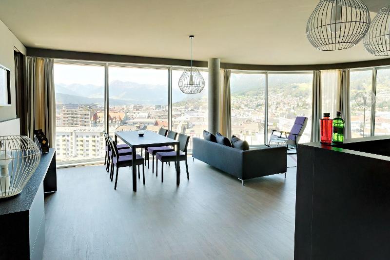 Este majestuoso hotel de diseño se encuentra en Innsbruck, en medio del esplendor natural de las montañas. Permite acceder fácilmente a la principal estación del área y a la animada zona comercial. Los huéspedes se encontrarán a solamente cinco minutos en coche del casco antiguo histórico de la ciudad y podrán disfrutar de varias actividades en las inmediaciones. Este espectacular hotel añade una pincelada contemporánea al entorno natural. Acoge a sus huéspedes con un estilo arquitectónico típico de la zona y el elegante entorno del interior. Las habitaciones tienen un magnífico diseño que sumerge al visitante en elegancia y lujo. Cuentan con un equipamiento moderno para un mayor confort. Los huéspedes quedarán impresionados con la amplia gama de instalaciones de primera categoría que ofrece el hotel.