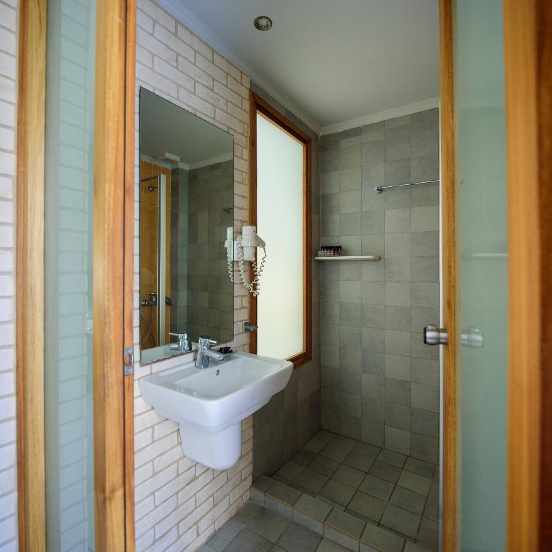 Amplio y muy lindo hotel. Habitacion amplia y confortable. Linda piscina junto al salon para el desayuno, el cual es muy completo. Esta en una excelente ubicación sobe Kamari con su propia playa...