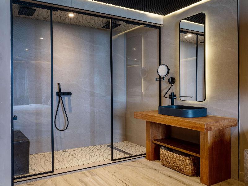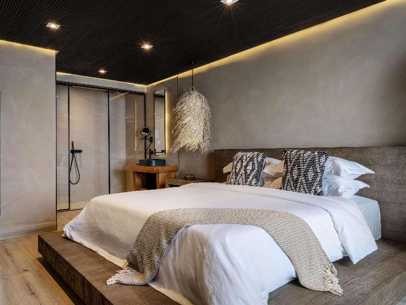 El hotel de 78 habitaciones se siente espacioso y privado, como un segundo hogar. Los muebles de madera natural y las cerámicas desgastadas con imperfecciones artísticas crean una sensación de lujo bohemio y relajado. Aire de O:live transmite una atmósfera terrenal, artesanal, y si alguna vez hubo un momento para usar la palabra «orgánico» sería al describir su abundancia de materiales naturales con textura. Madera, ratán, algodón y piedra crean un espacio relajado y cálido, con un estilo estético firmemente arraigado en el minimalismo orgánico moderno.