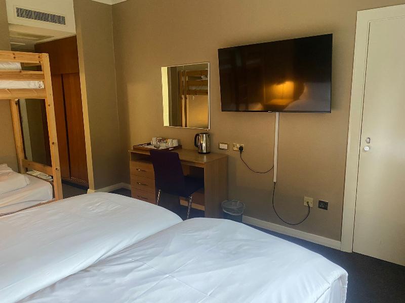 Hotel con habitaciones viejas y con mobiliario roto. El Wifi solo es gratuito en la habitación los primeros 40 minutos, después hay que pagar. Por el transfer al aeropuerto que está al lado también...