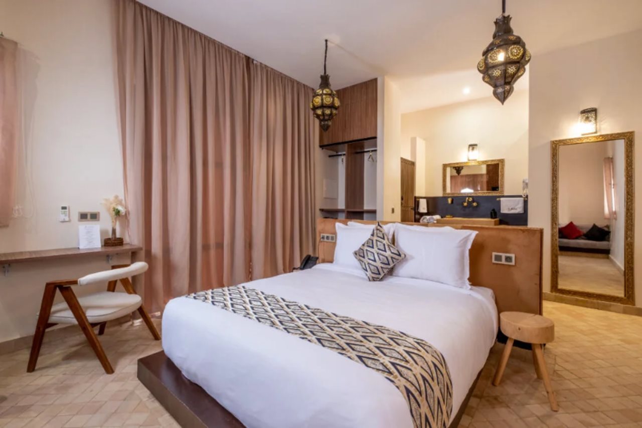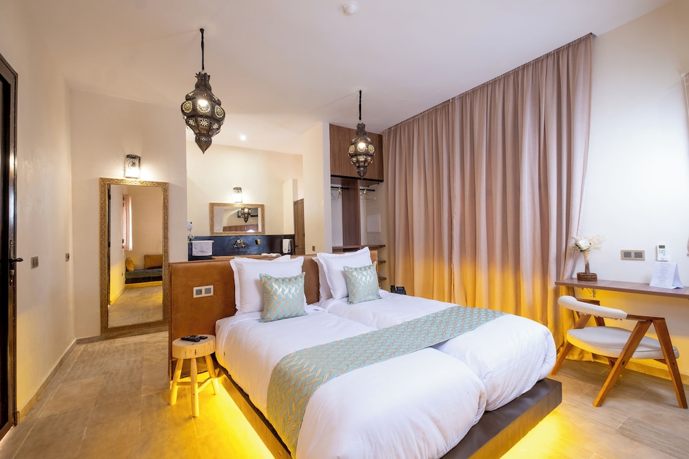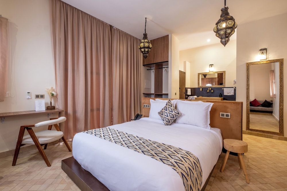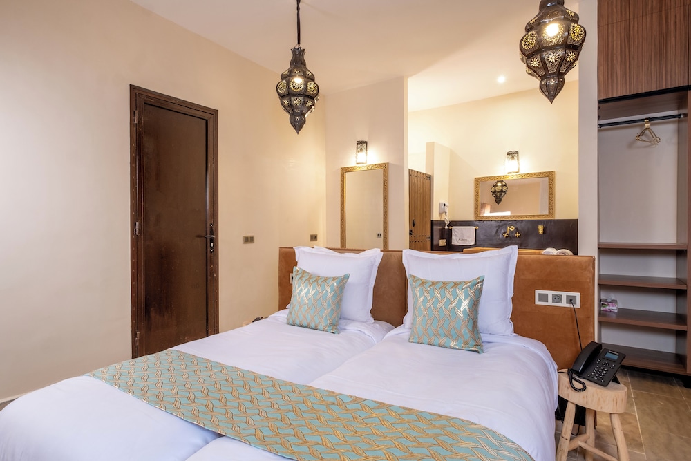 Las instalaciones y servicios incluyen aire acondicionado, piscina e internet inalámbrico.Las habitaciones cuentan con aire acondicionado, wifi, TV y minibar.Dirección: Bab Atlas Palmeraie, Marrakech 40170