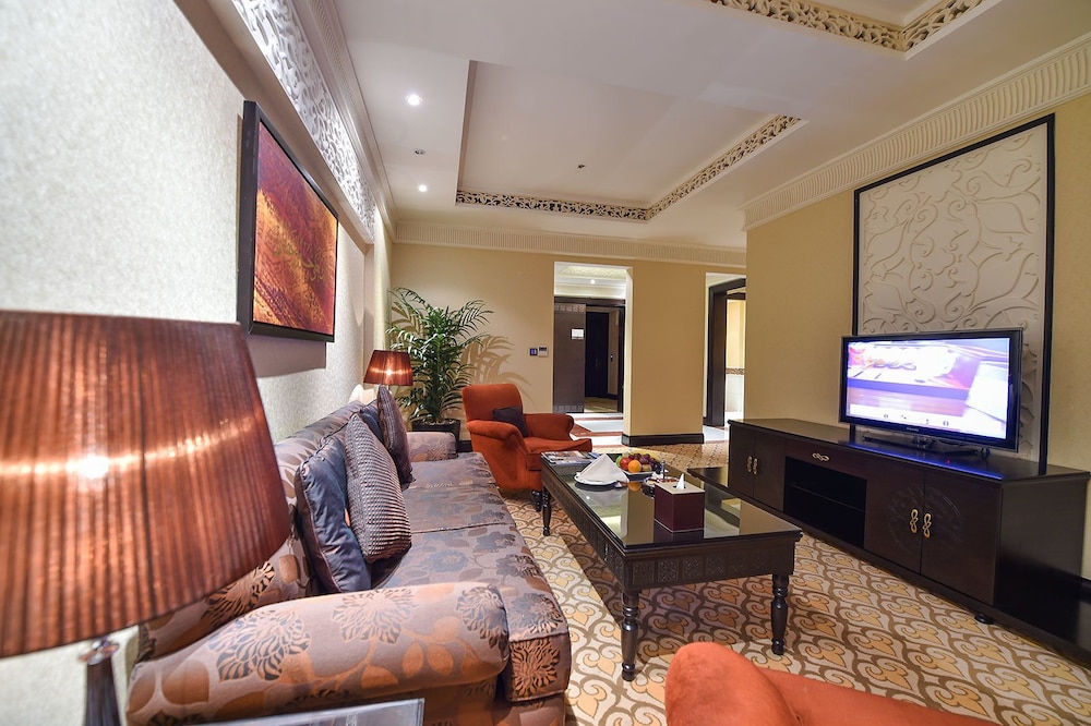 El hotel ofrece aparcamiento, servicio de aparcacoches, recepción 24 horas, caja fuerte, consigna de equipaje, cambio de divisas, jardín, terraza, ascensor, wifi, aire acondicionado, restaurante, desayuno en la habitación, cafetería, salón, instalaciones para negocios, salas de reuniones y banquetes (con suplemento), lavandería, tintorería y planchado (con suplemento), clases de fitness, piscina cubierta, sauna, jacuzzi, baño de vapor, spa (con suplemento), masajes (con suplemento), instalaciones para personas con discapacidad, acceso para sillas de ruedas y personal multilingüe.Las habitaciones están equipadas con servicio de limpieza diario, balcón o terraza, escritorio, TV, teléfono y baño privado.Hora de entrada: 15:00Hora de salida: 12:00Dirección: Intersección de la calle Al Orouba con Prince Turki bin Abdulaziz, Riad, Arabia Saudita, Apartado postal 33554, Riad 11458