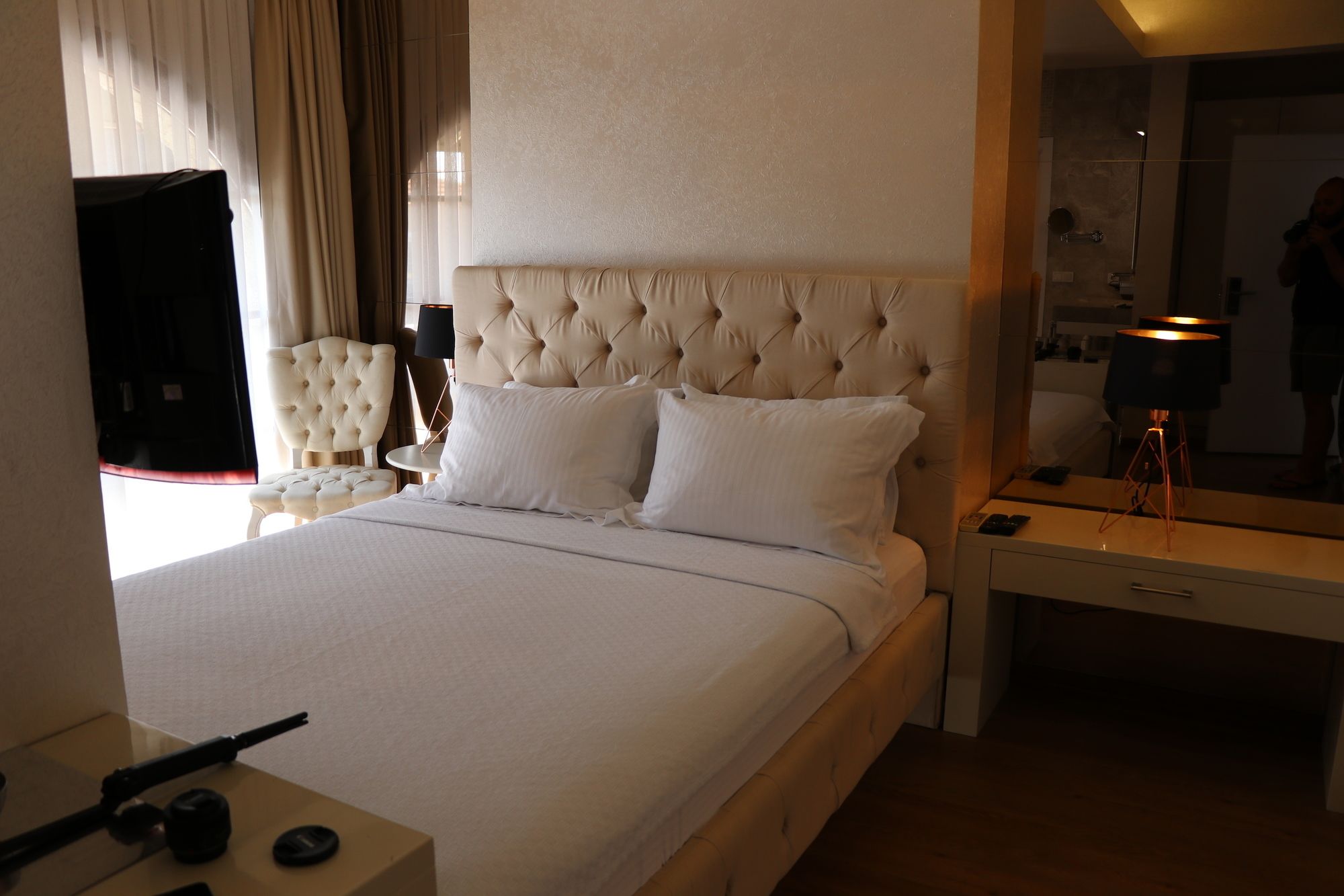 Si te alojas en Alacati The Hotel, en Çesme (Alacati), estarás a pocos pasos de Mezquita de Pazaryeri y a unos minutos de Playa de Ilica. Este hotel se encuentra cerca de Alacati Marina y de Parque acuático Aqua Toy City. Te sentirás como en tu propia casa en cualquiera de las 6 habitaciones con aire acondicionado, minibar y televisor LCD. La conexión a Internet wifi gratis te mantendrá en contacto con los tuyos; también podrás ver tu programa favorito en el televisor con canales por satélite. El baño privado está provisto de artículos de higiene personal gratuitos y secador de pelo. Entre las comodidades, se incluyen escritorio, además de un servicio de limpieza disponible todos los días. Con piscina al aire libre y conexión a Internet wifi gratis, entre muchas otras prestaciones, aquí tendrás todo lo que necesitas. Tienes un restaurante a tu disposición para comer algo en Alacati The Hotel. Relájate con un buen refresco en el 3 bares con salón. Se sirve un desayuno completo gratuito todos los días de 10:00 a 12:00. La recepción tiene un horario limitado.