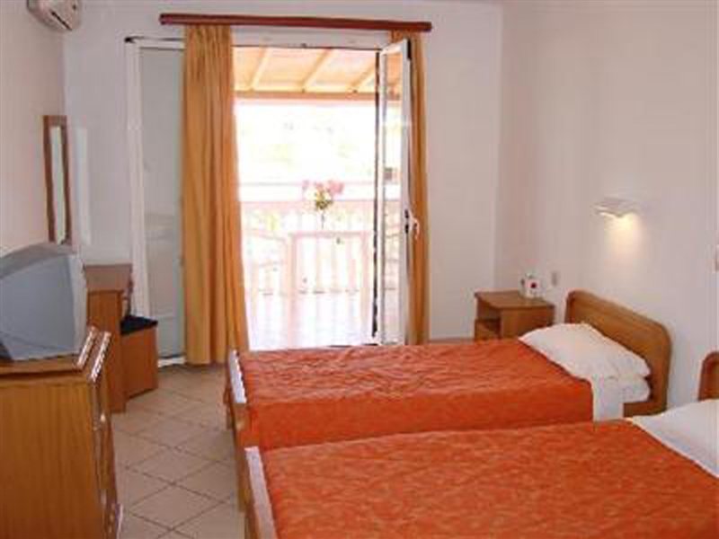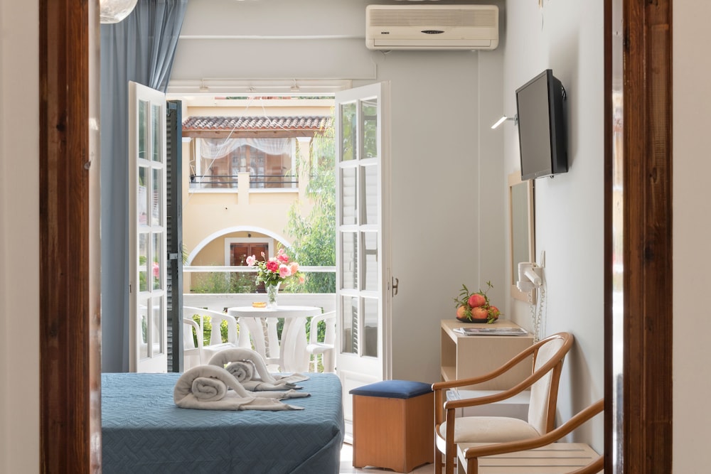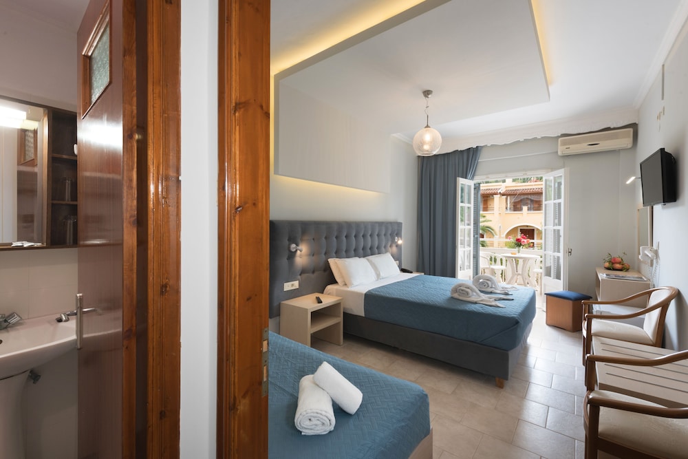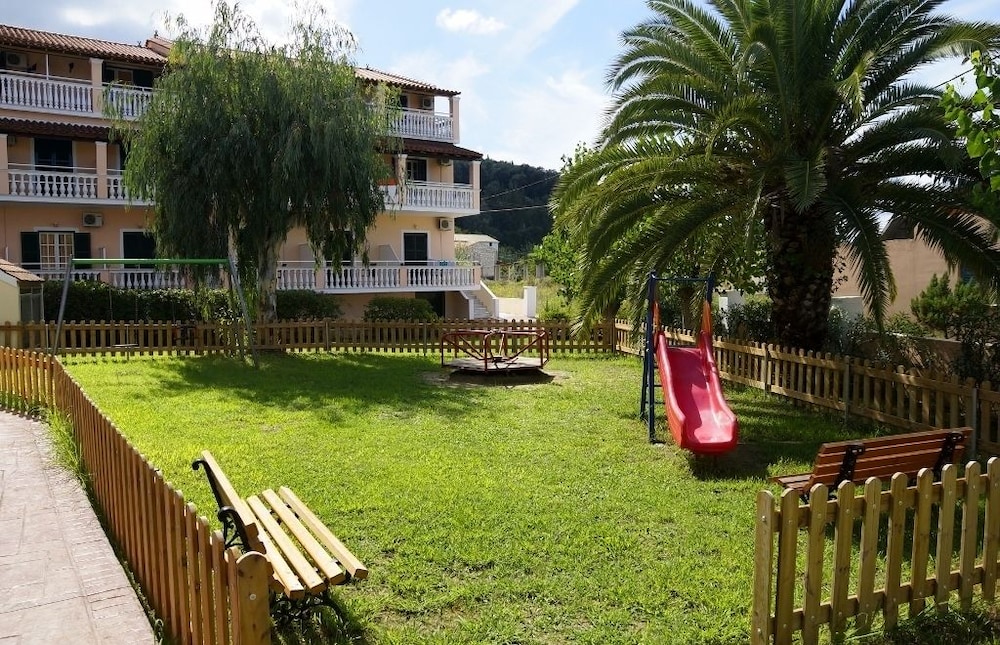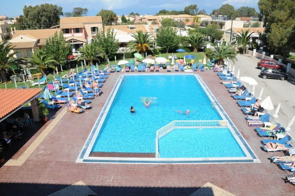Hay una parada de autobús cerca para poder explorar los alrededores. El aeropuerto de Corfú se encuentra a unos 40 km del hotel.Las instalaciones y servicios del hotel incluyen recepción con servicio de caja fuerte, ascensor, acceso a Internet (con cargo adicional), tienda de regalos, sala de televisión, restaurante con terraza, bar, piscina al aire libre con sección para niños, terraza con bar en la piscina, zona de juegos para niños y jardines. También ofrece mesa de billar, videojuegos y entretenimiento nocturno ocasional y noches griegas.Las habitaciones están equipadas con A / C (con cargo adicional), TV, teléfono, baño con bañera y / o ducha y secador de pelo.Los estudios están situados en el edificio anexo (a 20 m de la entrada del hotel) está equipado con A / C (con cargo adicional), TV, mini refrigerador, pequeña cocina, baño privado y balcón / terraza.** Tenga en cuenta que algunas de las instalaciones anteriores pueden estar cerradas debido a las condiciones climáticas / estacionales. Dirección: 49081 Sidari, Corfú, Grecia.