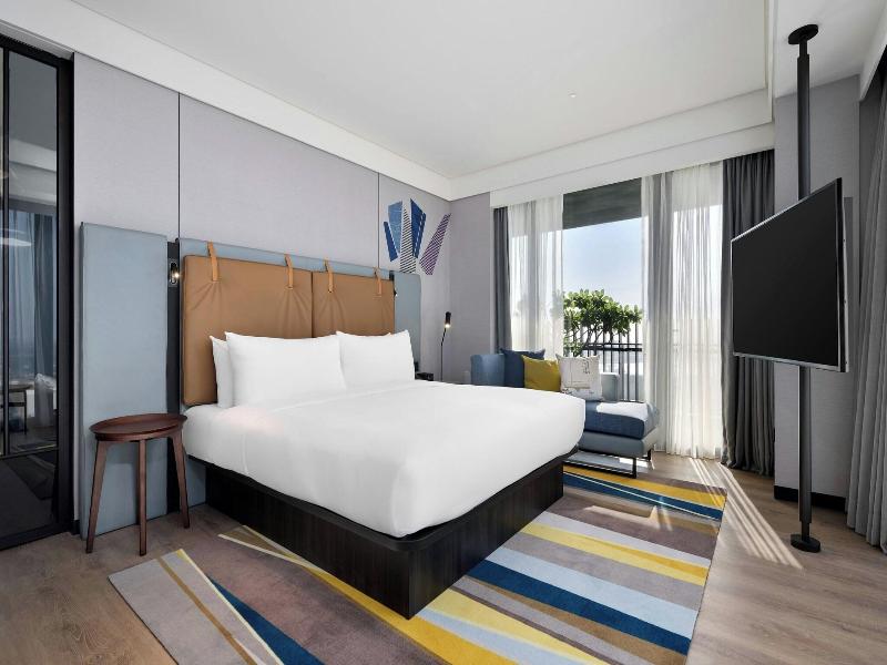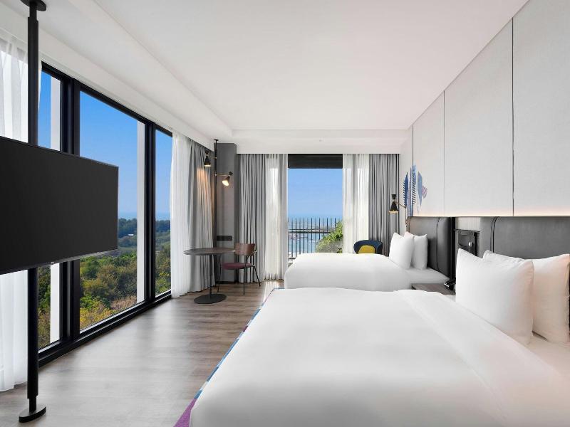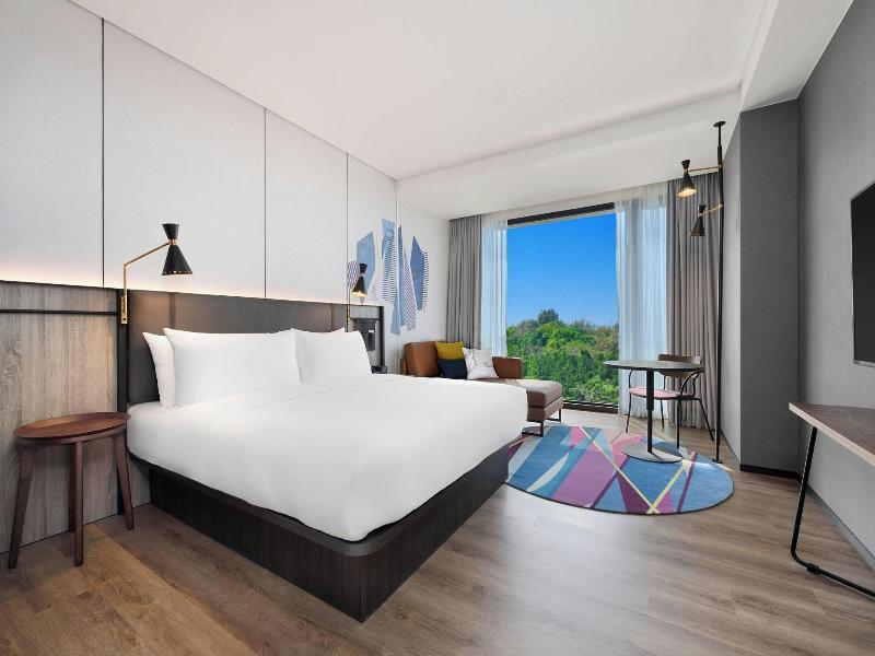 Disfruta de la comodidad moderna en el Aloft Tainan Anping, ubicado en el distrito Anping de Tainan. A poca distancia en coche de la calle Guohua y la Torre Chihkan, este hotel ofrece un gimnasio abierto las 24 horas, wifi gratuito y servicio de conserjería. Cena en DEPOT by Aloft, toma un refrigerio en la cafetería o relájate en uno de los dos bares. El desayuno autoservicio está disponible todos los días por un suplemento. Las 115 habitaciones con aire acondicionado disponen de minibar, TV de pantalla plana y baño privado con secador de pelo y zapatillas. Entre las comodidades adicionales se incluyen teléfono, caja fuerte, escritorio, aparcamiento gratuito, recepción 24 horas y personal multilingüe. Las atracciones cercanas incluyen el Museo Shi Mu Yu, el Castillo Eterno Dorado y el Canal Anping.