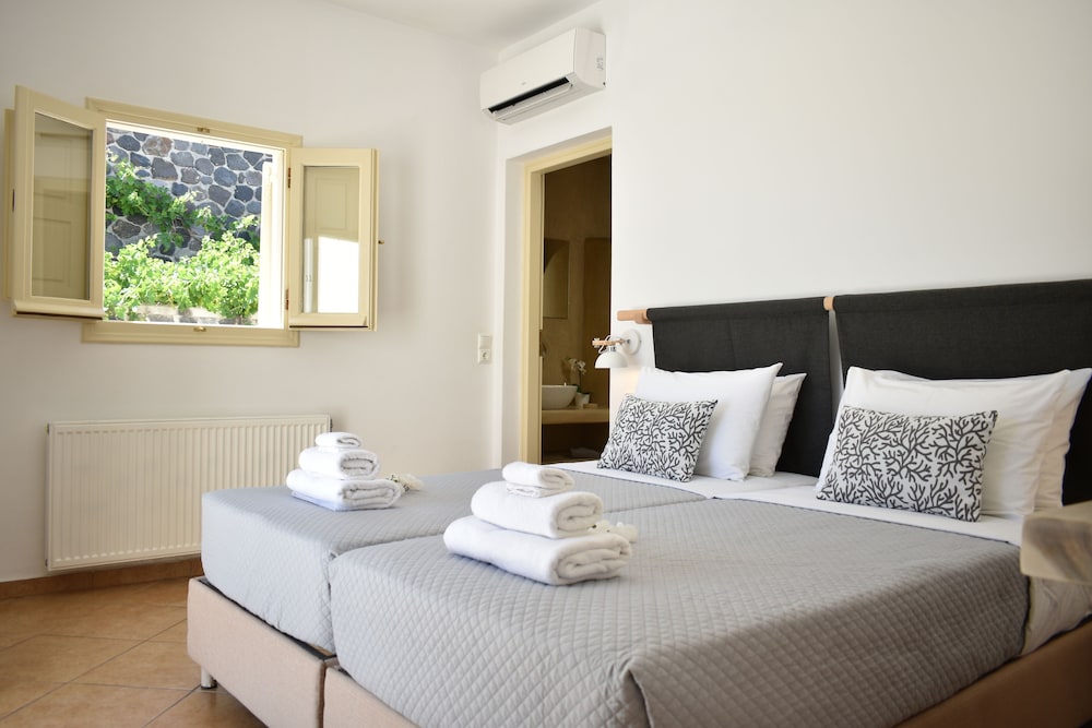 Si te alojas en Alter Ego Villa, en Santorini (Pírgos), estarás a poca distancia de Museo del Vino de la Isla de Santorini y Museo Prehistórico de Thera. Esta villa de 4 estrellas se encuentra muy cerca de Centro artístico Art Space Santorini y Bodega Boutari.Habitaciones Reserva una de las habitaciones climatizadas, dotadas de cocina con frigorífico y microondas, y disfruta de una estancia inolvidable. Las habitaciones disponen de balcón o patio. La conexión a Internet wifi gratis te permite comunicarte con los tuyos, y en tus ratos libres tendrás un televisor de pantalla plana con canales por satélite para entretenerte. Las comodidades incluyen caja fuerte y una zona de estar separada, además de un servicio de limpieza disponible todos los días.Servicios Con piscina al aire libre de temporada y muchas otras instalaciones recreativas a tu disposición, no te quedará ni un minuto libre. Se ofrece también conexión a Internet wifi gratis y servicios de conserjería.Servicios de negocios y otros Hay un aparcamiento sin asistencia gratuito disponible.