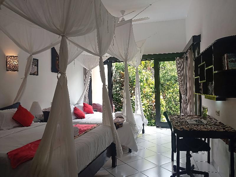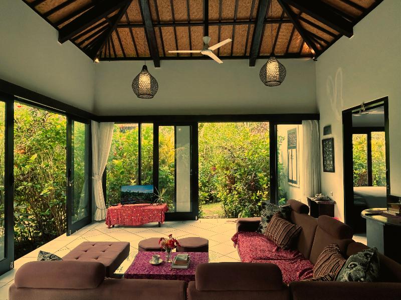 Ambary Ubud Villas en el tranquilo barrio Lodtunduh de Ubud cuenta con dos villas de 2 dormitorios: The Editorial House y The Front Page House y dos villas de 1 dormitorio: The Headlines House y The Writers Nest. Las cuatro villas —con un total de seis dormitorios, cuatro salas de estar y cinco cocinas/cocinetillas— están equipadas con espacios de trabajo privados exclusivos y baños en suite, para quienes buscan productividad y una estancia cómoda. Serena amplitud: Relájate en habitaciones de generosas dimensiones diseñadas para tu comodidad y descanso. Espacio de trabajo exclusivo: Abundante luz natural e internet de alta velocidad. Servicio atento: Disfruta de un servicio atento por parte de nuestro dedicado personal, siempre dispuesto a satisfacer tus necesidades.
