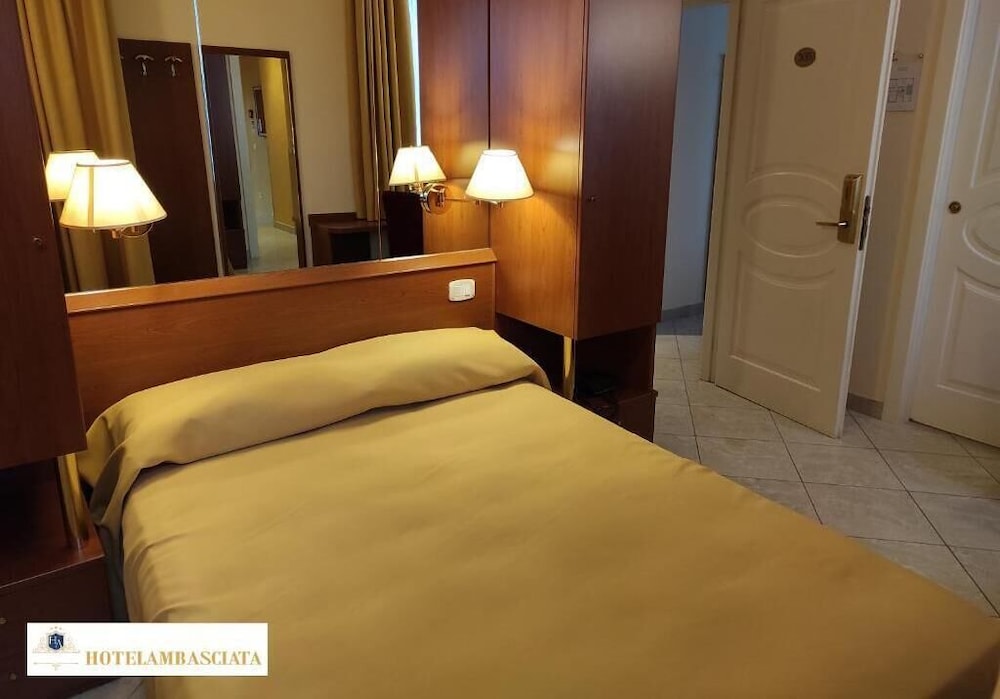 El hotel Ambasciata esta situado a 250 metros de la estación de tren, a 8 kilómetros del centro y a 7 kilómetros del aeropuerto. El hotel tiene un recepción, servicio de fax/fotocopia, ascensor, bar, desayuno tipo buffet y aparcamiento. Las habitaciones cuentan con baño completo (ducha o bañera), aire acondicionado, televisión, minibar, secador de pelo y teléfono. Cunas y habitaciones de no fumadores bajo petición. Se ruega a los clientes indicar la hora estimada de llegada al reservar este hotel.Dirección: Via Fagarè 19, 30171 Venice, Italia.