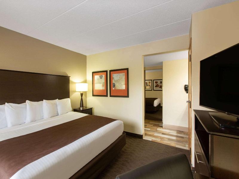 Nos alojamos en la suite de dos habitaciones por 4 días. Las habitaciones estaban limpias, el sofá era muy cómoda, el baño y el lavabo perfecto. El desayuno era muy bueno. Asientos para el desayuno...