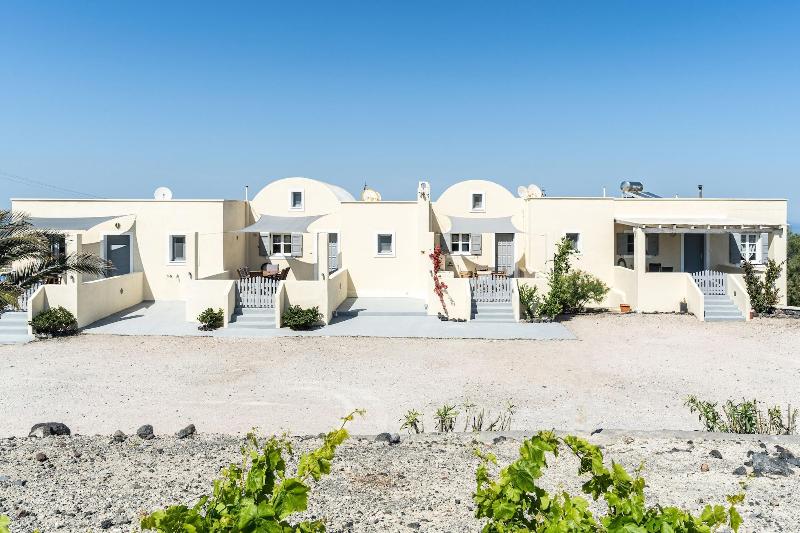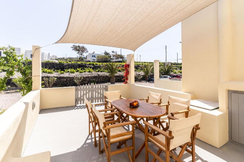 Alójese en Ampelos Executive Houses en Santorini y estará a 4 minutos en coche de la Caldera de Santorini y a 8 minutos del puerto de Athinios. Este hotel se encuentra a 6, 4 km de la playa de Kamari y a 8, 3 km de la Antigua Thira. Disfrute de las vistas desde el jardín y aproveche las comodidades, como conexión inalámbrica a internet gratuita y asistencia turística para la compra de entradas. Tendrá a su disposición servicios de tintorería/lavandería, consigna de equipaje y lavandería. Se ofrece servicio de transporte al aeropuerto (ida y vuelta) con cargo adicional (disponible las 24 horas). Se sirve un desayuno continental gratuito todos los días de 4:00 a 13:00. Siéntase como en casa en una de las 4 habitaciones con aire acondicionado y cocina con frigorífico/congelador grande y horno. Las habitaciones disponen de balcón o patio amueblado privado. La televisión de pantalla plana de 32 pulgadas con canales por cable le ofrece entretenimiento, y gracias a la conexión inalámbrica a internet gratuita, podrá mantenerse conectado. El baño privado con ducha y bañera combinadas está provisto de bañera profunda y artículos de higiene personal gratuitos.