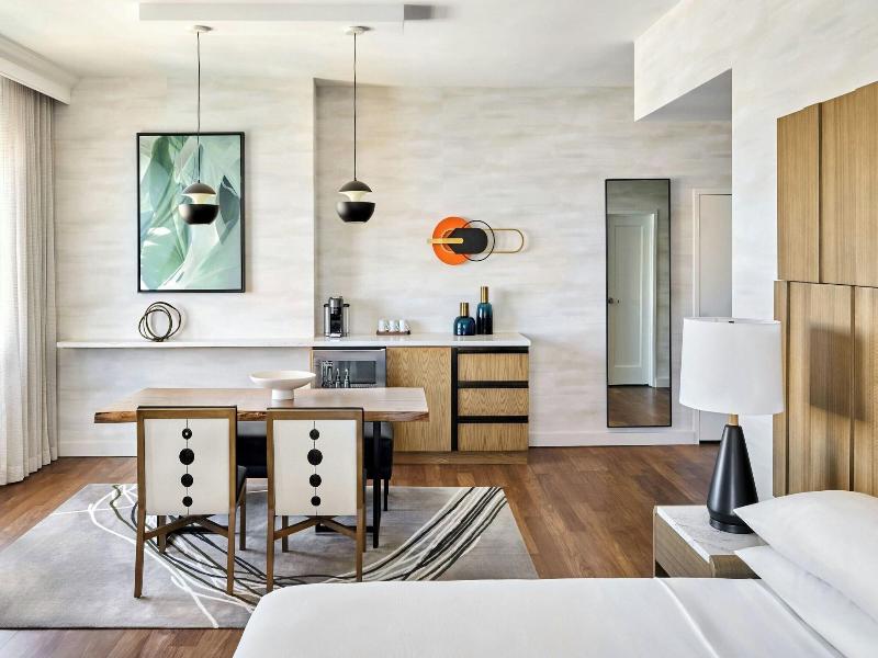 La habitación vieja , el aire sonaba raro y muy pequeña también. El bar del lobby bueno y también el restaurante Nfusion. Yo estuve durante la convención de expowest y pagamos 450 dólares la noche...