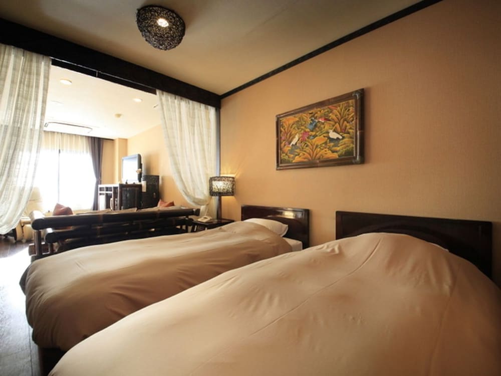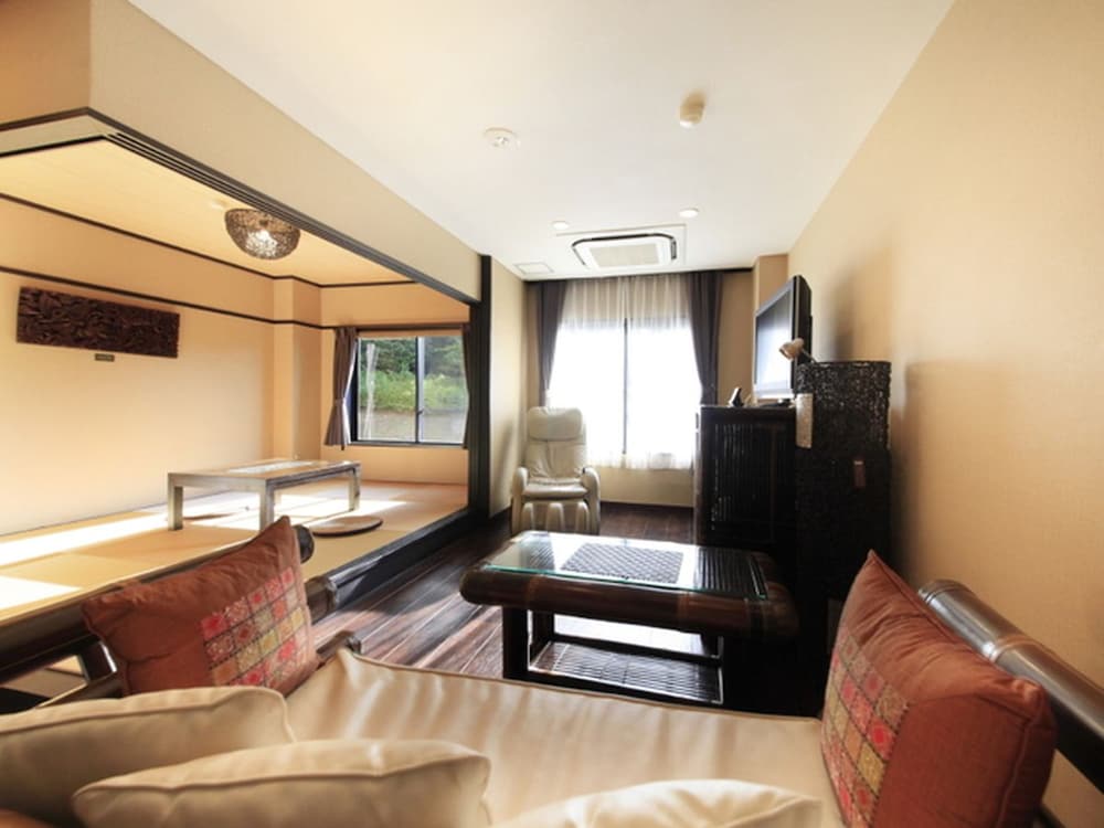 Si decides alojarte en Anda Bettei Izu Ippekiko de Ito, apenas te separarán 15 minutos en coche de Museo del Vidrio y de Arte Popular de Izu y Izu Oceanic Park. Además, este hotel se encuentra a 16,5 km de Atagawa Tropical and Alligator Garden y a 1,6 km de Club de campo Gold Kawana. Te sentirás como en tu propia casa en cualquiera de las 40 habitaciones con aire acondicionado, frigorífico y televisor de pantalla plana. Con reproductor de DVD y conexión a Internet wifi gratis, tienes para elegir a la hora de entretenerte. El baño privado con bañera y ducha independientes está provisto de artículos de higiene personal gratuitos y secador de pelo. Entre las comodidades, se incluyen caja fuerte y artículos del minibar gratis, además de un servicio de limpieza disponible todos los días. Apreciarás las instalaciones de ocio, que incluyen aguas termales, karaoke y bicicletas de alquiler. En Anda Bettei Izu Ippekiko tienes un restaurante a tu disposición para comer algo. Apaga la sed con tu bebida favorita en el bar o lounge. Se sirve un desayuno bufé gratuito todos los días de 7:30 a 9:30. Tendrás servicio de recepción 24 horas, depósito de equipaje y biblioteca a tu disposición. Se ofrece servicio de transporte desde la estación de tren gratuito y un aparcamiento sin asistencia gratuito.