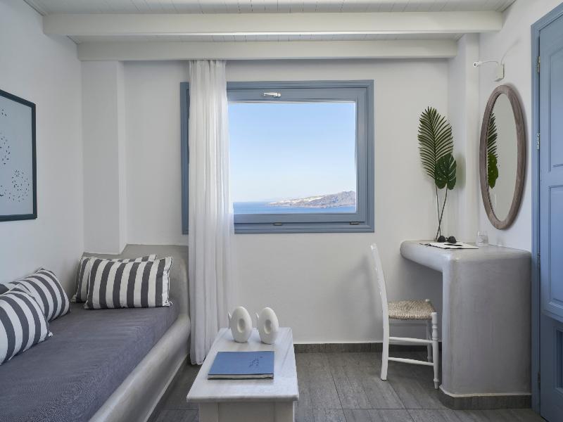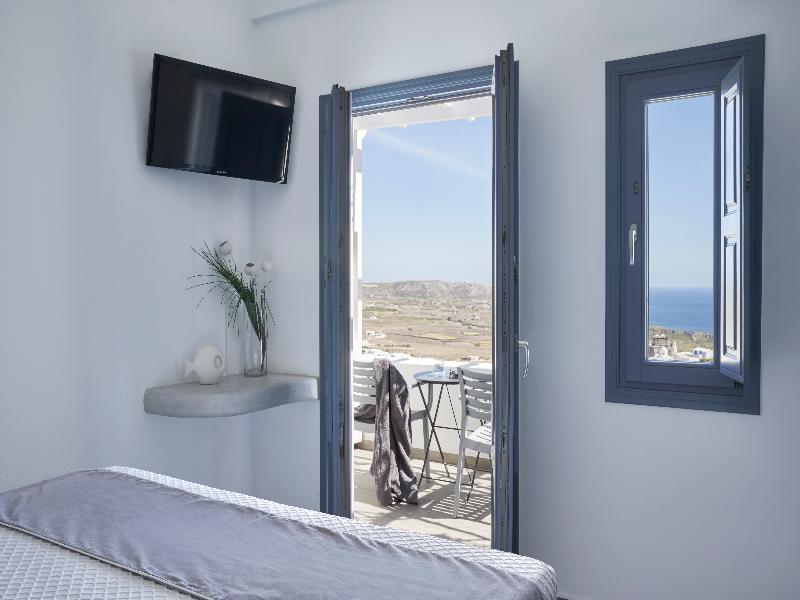Desde Apanemo Hotel, tu mirada se extiende sobre la magnífica bahía de la Caldera, abarcando el impresionante volcán y la vista de Santorini, similar a un anfiteatro. Cada habitación, artísticamente decorada, refleja la arquitectura tradicional de la isla y cuenta con un balcón privado con vistas inigualables, lo que garantiza una estancia tranquila y acogedora. Las comodidades de Apanemo incluyen una impresionante piscina, jacuzzi, bar, aparcamiento privado y wifi. En la encantadora sala de desayunos, disfruta de un abundante bufé con especialidades locales caseras.