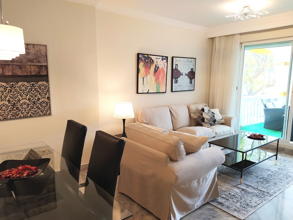 Desde Apartamento Dama de Luna Marbella, en Marbella, tendrás fácil acceso a Museo Ralli y a Centro Plaza. Este complejo de apartamentos se encuentra cerca de El Corte Ingles y de Puerto deportivo de Puerto Banús.Habitaciones Reserva una de las habitaciones climatizadas, dotadas de cocina con frigorífico/congelador grande y horno, y disfruta de una estancia inolvidable. Las habitaciones disponen de balcón o patio. Mantén el contacto con los tuyos gracias a la conexión a Internet wifi gratis. Las comodidades incluyen microondas, cafetera y tetera y la posibilidad de solicitar cunas (de pago).Servicios Elige entre las numerosas instalaciones recreativas ofrecidas, que incluyen una pista de tenis exterior y piscina al aire libre de temporada.Para comer En Apartamento Dama de Luna Marbella tendrás a tu disposición un restaurante o la posibilidad de tomar algo rápido en la cafetería.Servicios de negocios y otros Pagando un pequeño suplemento podrás aprovechar prestaciones como servicio de transporte al aeropuerto (ida y vuelta) (disponible las 24 horas) y aparcamiento sin asistencia gratuito.