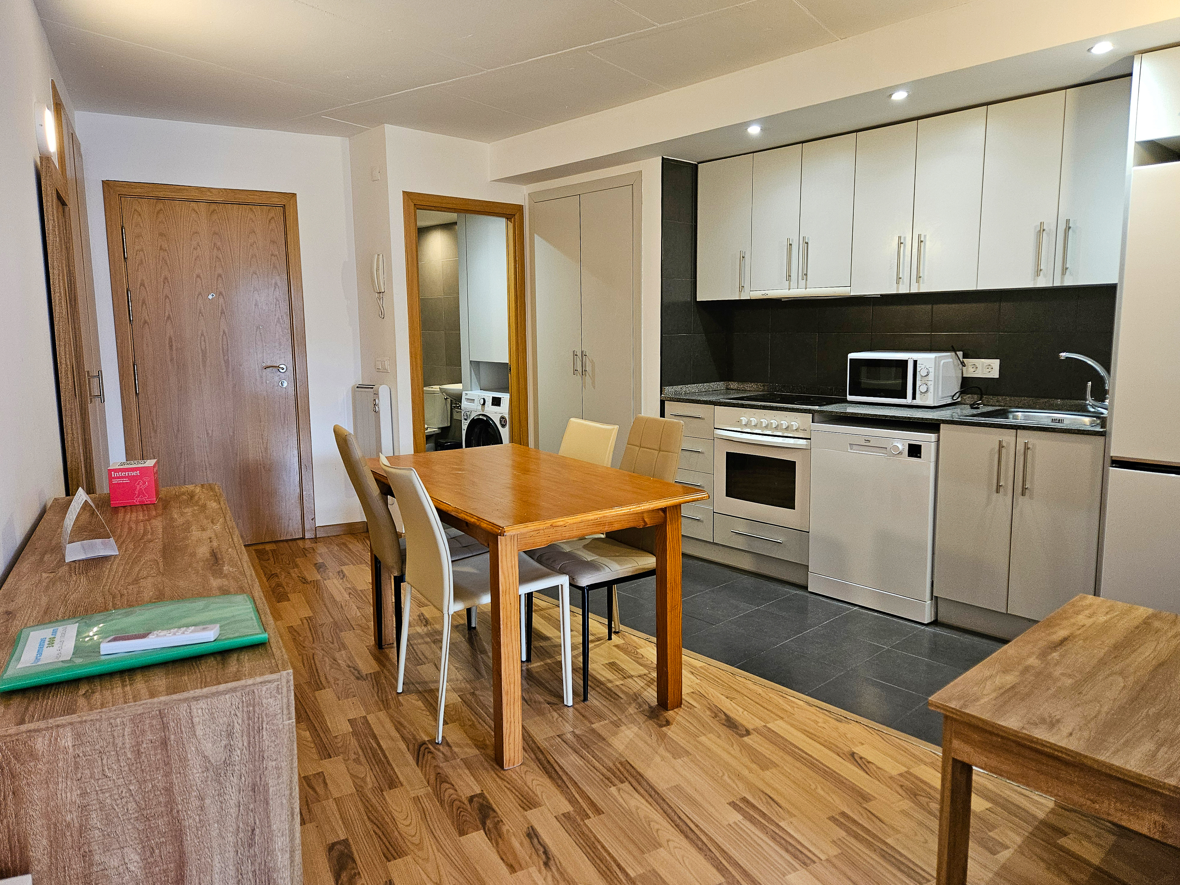Nuestros Apartamentos La Solana 3000 5 Estrellas tienen una capacidad para entre 2 y 6 personas, y son unos apartamentos para vacaciones en Pas de la Casa muy bonitos. Tienen una cocina totalmente equipada con todos los electrodomésticos y utensilios necesarios para pasar unas plácidas vacaciones en la montaña. Además tienen baño completo y televisión en el salón. Los Apartamentos La Solana 3000 5 Estrellas son unos apartamentos de categoría cinco estrellas situados en la localidad de Pas de la Casa (Andorra). Se trata de un bonito pueblo de montaña, ubicado a los pies de la estación de esquí de GrandValira. Estos apartamentos de lujo están situados a entre 300 y 500 metros de la estación de esquí de GrandValira, por lo que podrás comenzar a esquiar prácticamente nada más salir de los apartamentos.**Recogida de llaves en la Oficina de Apartamentos 3000 en Carrer de La Solana, 55. AD200 Pas de la Casa y teléfono 00376 684 334 Para agilizar su check in, le recomendamos que realice el CHECK IN ONLINE 1 o 2 días antes de la fecha de entrada. Horario de Entrada: De 17h a 20h, fuera de horario consultar siempre antes. Horario de Salida: Hasta las 10 horas. Suplementos llegada tardía: Entregas de llaves hasta las 22h horas sin cargo. (Avisando con al menos 24 horas de antelación). Entrega de llaves de 22h01 a 00h horas suplemento de 20€ pago directo a la llegada. (Avisando con al menos 24 horas de antelación). Entrega de llaves a partir de las 00h01 horas suplemento de 35€ pago directo a la llegada. (Avisando con al menos 24 horas de antelación).Enntrega de llaves a partir de las 02:01 suplemento de un dia mas completo. No incluido en el precio: No disponen de mantelerías y paños de cocina. Tasa turística municipal no incluida, pago directo a la llegada. (El importe puede variar según el tipo de establecimiento y las noches de estancia). EXTRAS: Mascotas: bajo petición y con suplemento (a consultar con el establecimiento, de pago directo en el hotel)Parking: (bajo disponibilidad y con suplemento)(a consultar con el establecimiento, de pago directo en el hotel). Cuna: bajo petición y disponibilidad; y con suplemento (a consultar con el establecimiento, de pago directo en el hotel). Wifi:(a consultar con el establecimiento, de pago directo en el hotel)Fianza: Se solicita a la llegada una fianza de 150 euros por apartamento (mediante tarjeta).**