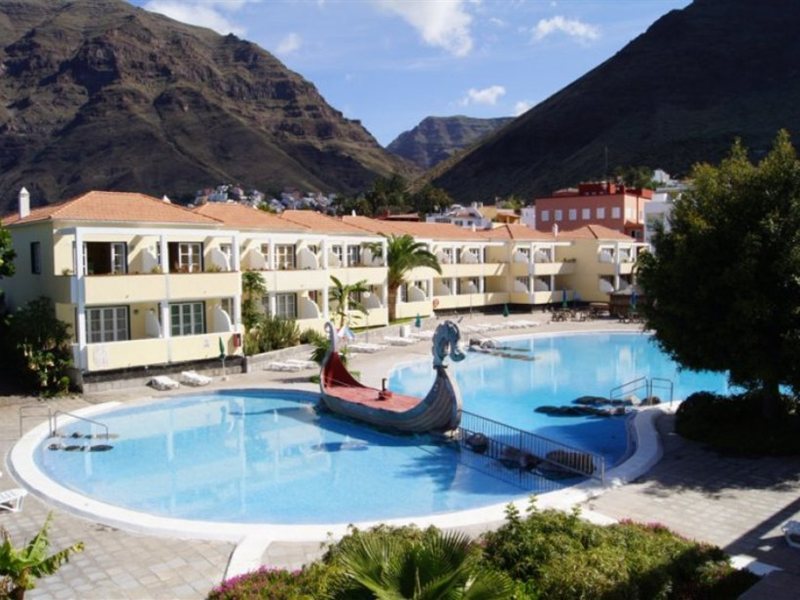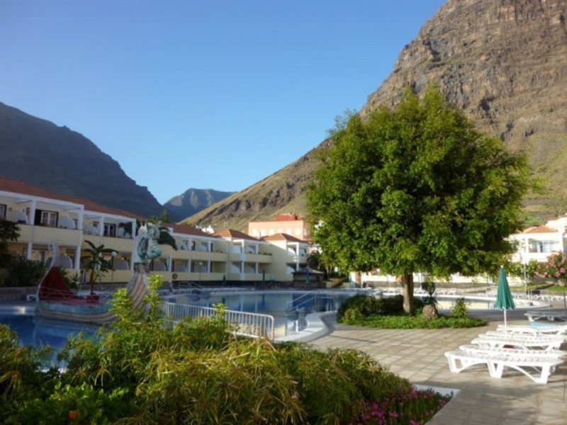 El complejo dispone de recepción 24h, piscina, caja de seguridad en recepción, cancha de tenis, acceso a Internet, buffet desayuno, jardines, restaurante, snack bar, parque infantil, sala de conferencias, servicio de habitaciones y gimnasio. Los apartamentos están equipados con TV (Cargo extra - opera con monedas), teléfono, cocina eléctrica, nevera y balcón o terraza. Dirección: Avda. El Llano, 2 (Valle Gran Rey)38870 La GomeraCanarias, Spain