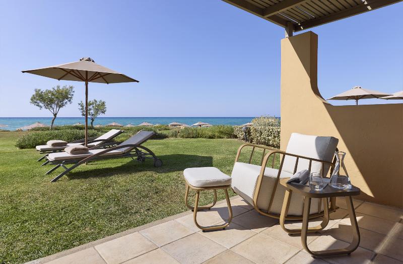 Ideal para unas vacaciones en Grecia, este hotel se encuentra en una playa de arena de 500 metros y ofrece una alternativa inigualable: las azules aguas del Egeo o la comodidad de las piscinas del hotel, con formas de pequeñas islas. Quienes buscan actividades más deportivas pueden practicar tenis y parasailing en la zona. Después de un día de sol, agua y diversión, los huéspedes pueden disfrutar de un ouzo antes de la cena en su balcón privado o en la terraza compartida con vistas al mar. El restaurante principal sirve deliciosas especialidades griegas e internacionales, y organiza regularmente noches temáticas como la 'Noche cretense', la 'Cena de Langosta' o el 'Festival del Pescado', con entretenimiento en vivo.
