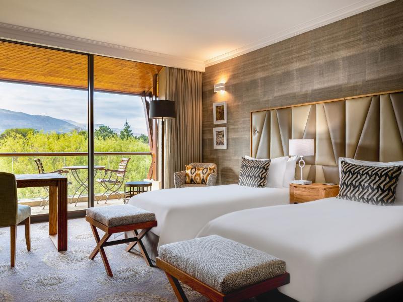 Enclavado entre las montañas Kogelberg y la laguna Bot River, este impresionante hotel combina a la perfección el lujo con auténticos toques sudafricanos, prometiendo una experiencia inolvidable. Ubicado a 100 km de Cape Town, en medio de una belleza natural impresionante, el hotel ofrece un diseño espectacular, modernas habitaciones y excepcionales instalaciones de ocio, que incluyen un spa de última generación y un extenso campo de golf de 18 hoyos. La elegante decoración combina el encanto clásico del viejo mundo con un diseño contemporáneo y una cálida hospitalidad. Podrás relajarte en el ambiente luminoso y acogedor y disfrutar de la máxima comodidad en las habitaciones y suites, completamente equipadas. El restaurante del hotel ofrece una cocina exquisita y una amplia selección de vinos, que puedes saborear en el elegante comedor o en la terraza con vistas a la piscina en cascada. Un acogedor bar y un práctico centro de negocios te brindan mayor comodidad.