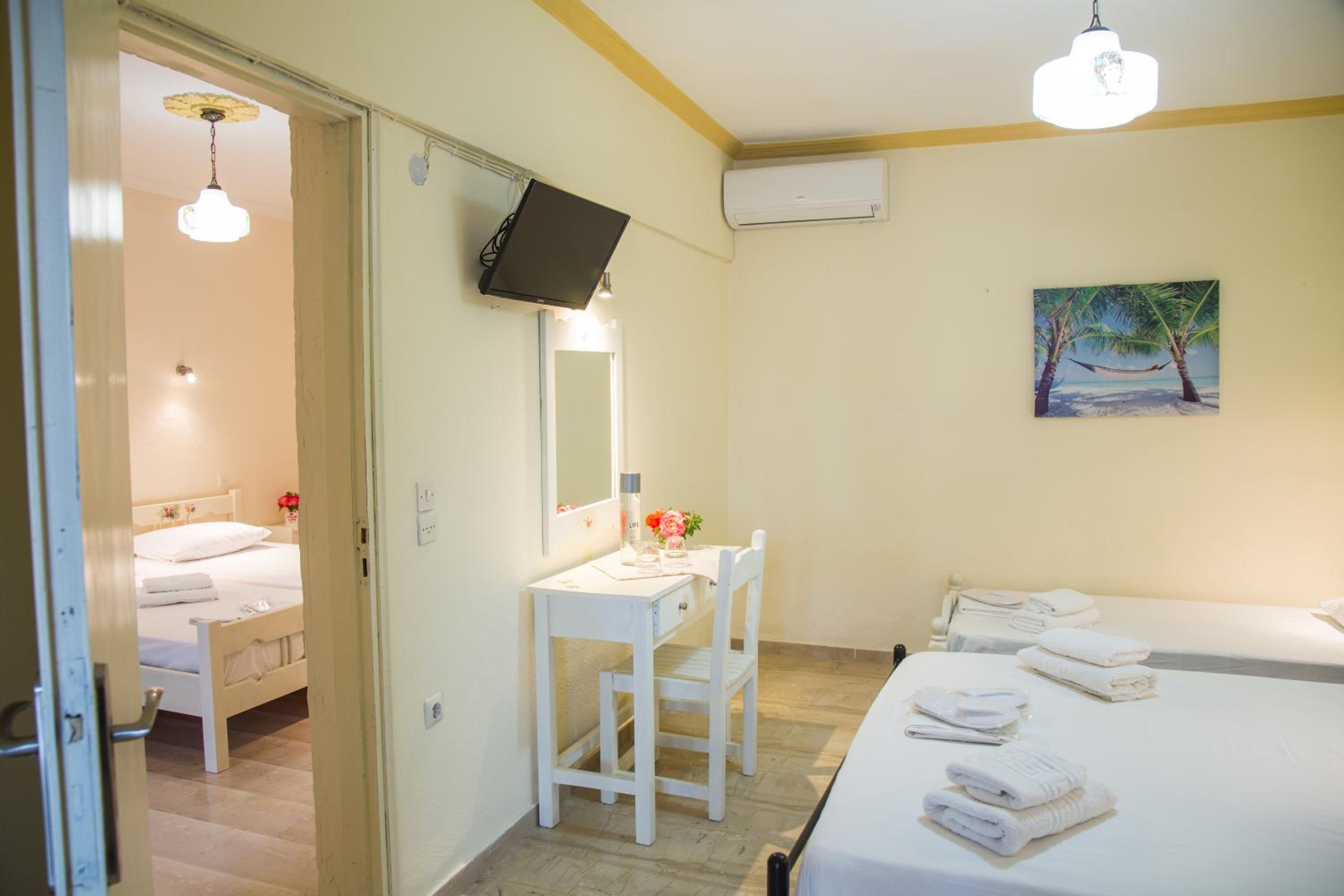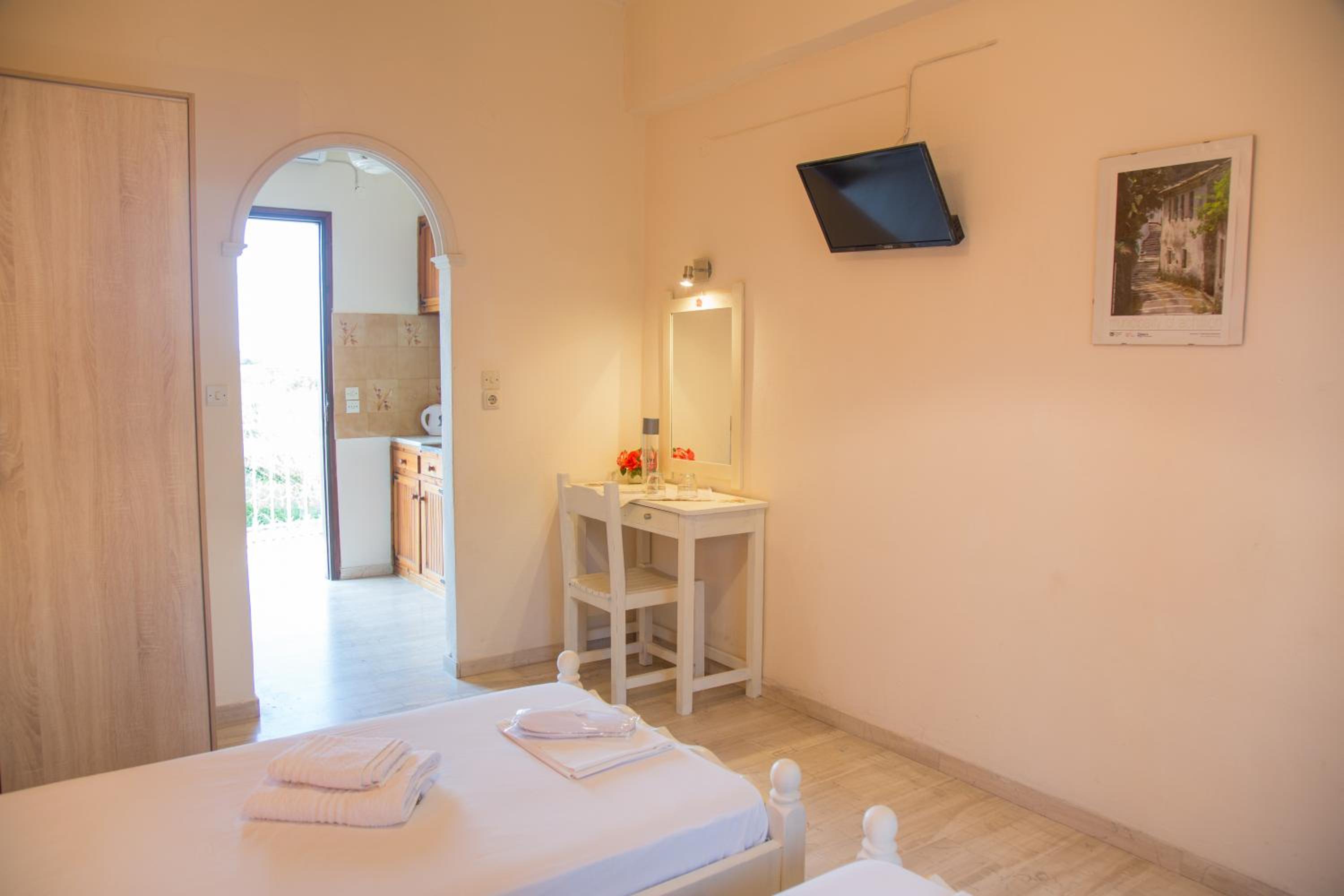 Aristides Studios te permite disfrutar de una ubicación estupenda en Corfú, junto al mar y a poca distancia de Isla Ratón y Iglesia Panagia Vlahernon. Este apartamento se encuentra cerca de Achilleion y de Museo Mon Repos de Palaiopolis. Reserva una de las 13 habitaciones climatizadas, todas dotadas de cocina básica con frigorífico/congelador grande y placa de cocina. Las habitaciones disponen de balcón amueblado. La conexión a Internet wifi gratis te permite comunicarte con los tuyos, y en tus ratos libres tendrás un televisor de pantalla plana con canales por satélite para entretenerte. Entre las comodidades, se incluyen hervidor eléctrico y botella de agua gratuita, además de un servicio de limpieza disponible todos los días. Con jardín donde descansar y comodidades como conexión a Internet wifi gratis y sala de juegos electrónicos o de mesa, ¡no te faltará de nada! Se sirve un desayuno bufé gratuito todos los días de 7:30 a 10:00. La recepción tiene un horario limitado. Hay un aparcamiento sin asistencia gratuito disponible.