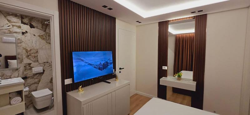 Los Apartamentos Arkle 2 en Tirana ofrecen una cómoda estancia a solo 5 minutos en coche del Ministerio de Defensa y de la Plaza Skanderbeg. Cada una de las cinco habitaciones con aire acondicionado cuenta con TV de pantalla plana con canales por cable y wifi gratis. Los baños están equipados con ducha y bidé. Entre los lugares de interés cercanos se incluyen la Iglesia Católica de Santa María (0, 9 km), el Regency Casino (1 km) y el Estadio Selman Stermasi (0, 9 km). El Aeropuerto Internacional Nene Tereza (TIA) está a 18, 1 km.