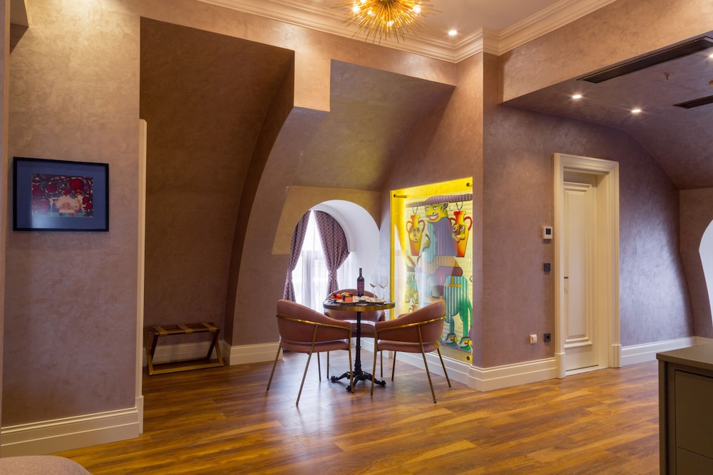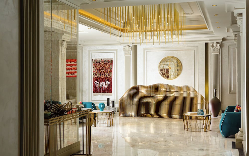 Si eliges Art Gallery Hotel en Bakú, estarás a pocos minutos de Museo de las alfombras de Azerbaiyán y en las inmediaciones de Sala filarmónica estatal de Azerbaiyán. Este hotel de 5 estrellas se encuentra muy cerca de Parque Dağüstü y Palacio de los Shirvan Shahs. Te sentirás como en tu propia casa en cualquiera de las 31 habitaciones con aire acondicionado y televisor LED. Mantén el contacto con los tuyos gracias a la conexión a Internet wifi gratis. El baño privado con bañera o ducha está provisto de secadora de cabello y zapatillas. Entre las comodidades, se incluyen caja fuerte, tabla de planchar con plancha y teléfono con y llamadas locales gratuitas. Aprovecha los prácticos servicios que se te ofrecen, como conexión a Internet wifi gratis, servicios de conserjería o televisor en zonas comunes. Aprovecha el servicio de habitaciones las 24 horas de este hotel. Tendrás conexión a Internet de alta velocidad por cable (gratuita), servicio de tintorería y servicio de recepción 24 horas a tu disposición. Se ofrece servicio de transporte al aeropuerto (ida y vuelta) de pago (disponible las 24 horas).