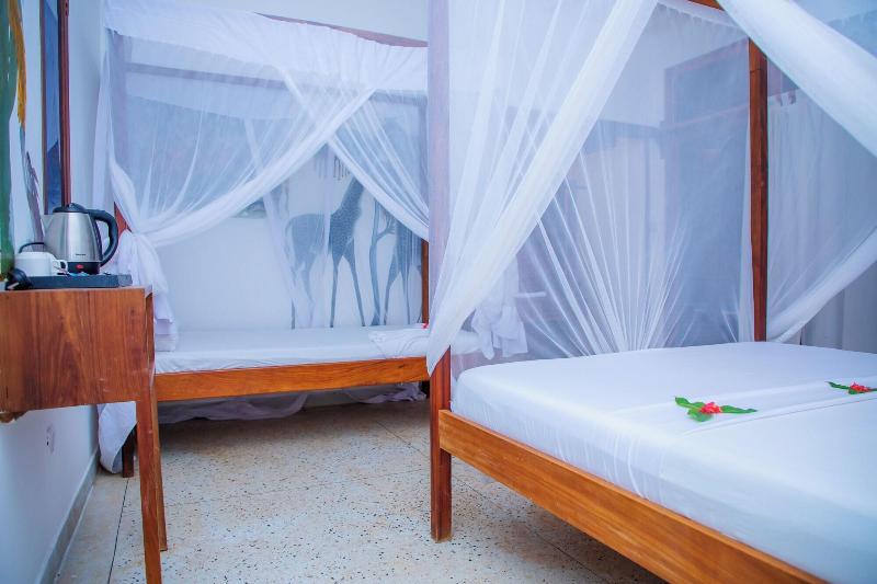Ubicado en Jambiani, el Art Hotel Zanzibar se encuentra a 1 minuto en coche de la playa de Jambiani y a 9 minutos de la cueva de Kuza. Este hotel se encuentra a 7, 5 km de la playa de Paje y a 22, 9 km de la playa de Kizimkazi. Aprovecha las opciones de ocio, como una piscina al aire libre, o disfruta de las vistas desde la terraza y el jardín. Entre los servicios adicionales se incluyen servicio de limpieza en seco/lavandería y consigna de equipaje. Hay aparcamiento gratuito disponible en las instalaciones. En el Art Hotel Zanzibar, podrás disfrutar de una deliciosa comida en el restaurante. Se sirve un desayuno a la carta gratuito todos los días de 7:30 a 10:00. Siéntete como en casa en una de las 4 habitaciones. Las habitaciones disponen de patio privado amueblado. Los baños privados con ducha disponen de cabezal de ducha tipo lluvia y artículos de tocador gratuitos. Entre las comodidades se incluyen hervidor eléctrico y ventilador de techo, además de servicio de limpieza diario.