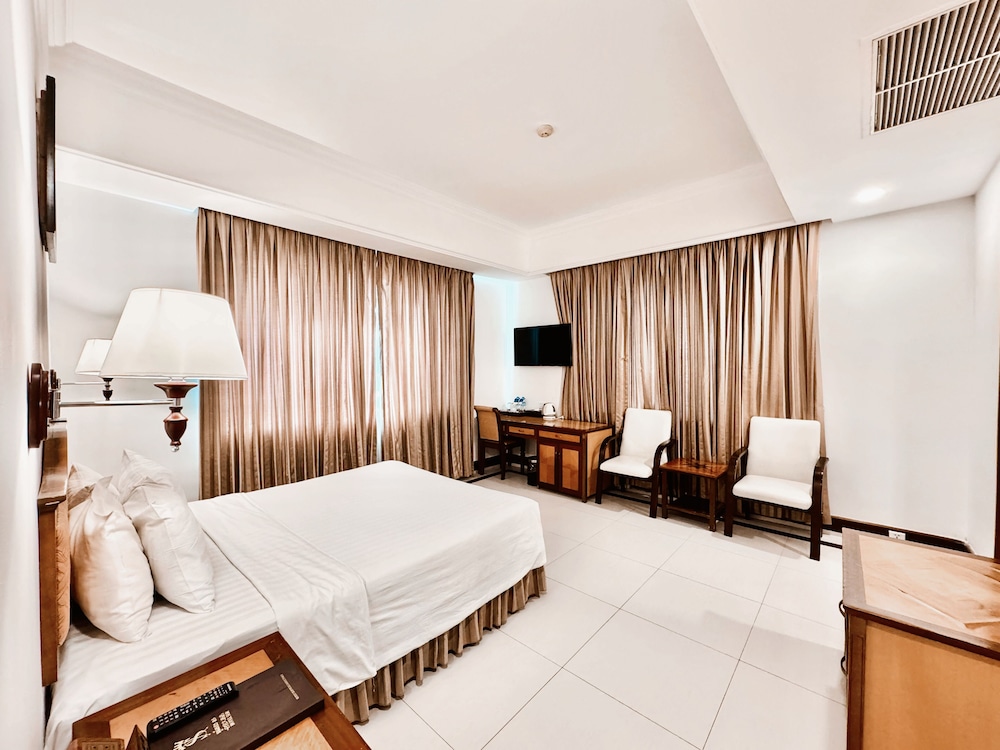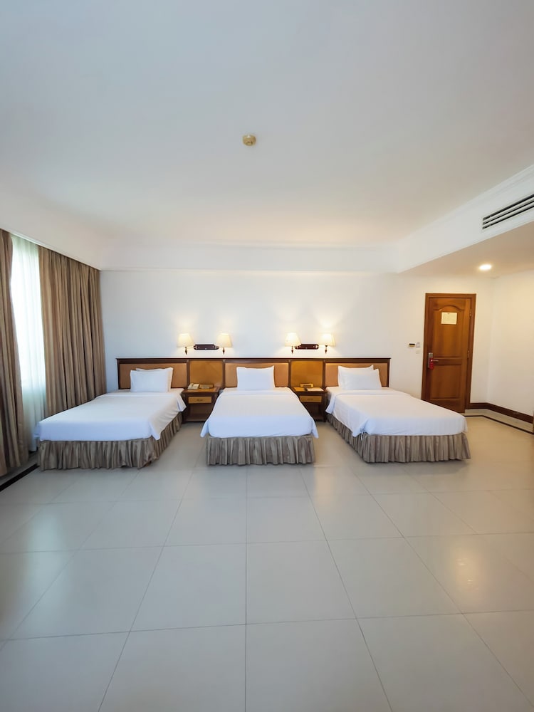 Si decides alojarte en Asia Palace Hotel, te encontrarás en una fantástica zona de Phnom Penh (Phnom Penh (centro de la ciudad)) y estarás a menos de diez minutos en coche de Monumento de la independencia y Mercado central. Además, este hotel con spa se encuentra a 2,6 km de Palacio Real y a 2,7 km de Museo de Genocidio Tuol Sleng. Te sentirás como en tu propia casa en cualquiera de las 140 habitaciones con aire acondicionado y minibar. La conexión a Internet wifi gratis te mantendrá en contacto con los tuyos; también podrás ver tu programa favorito en el televisor con canales por cable. El baño privado está provisto de artículos de higiene personal gratuitos y secador de pelo. Entre las comodidades, se incluyen caja fuerte y escritorio, además de un servicio de limpieza disponible todos los días. Relájate en el spa completo, que ofrece masajes. Encontrarás también conexión a Internet wifi gratis, servicios de conserjería y un televisor en la zona común. Este hotel pone a tu disposición una cafetería. Se ofrece un desayuno bufé todos los días de 6:30 a 10:00 con un coste adicional. Tendrás un centro de negocios, periódicos gratuitos en el vestíbulo y tintorería o lavandería a tu disposición. Pagando un pequeño suplemento podrás aprovechar prestaciones como servicio de transporte desde el aeropuerto hasta el hotel (disponible las 24 horas) y aparcamiento sin asistencia gratuito.
