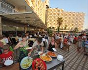 Nearest airport: BUD. The Asrin Beach Hotel is located in the Turkler District, providing guests quality service and comfort. Overlooking the Mediterranean Seas and the Taurus mountains, this property boasts a private beach just 120m away, outdoor swimming pools, waterslides, restaurant and bars. The hotel has 250 spacious and modern rooms, prepared for your comfort with amenities such as satellite TV, minibar, and air condition.