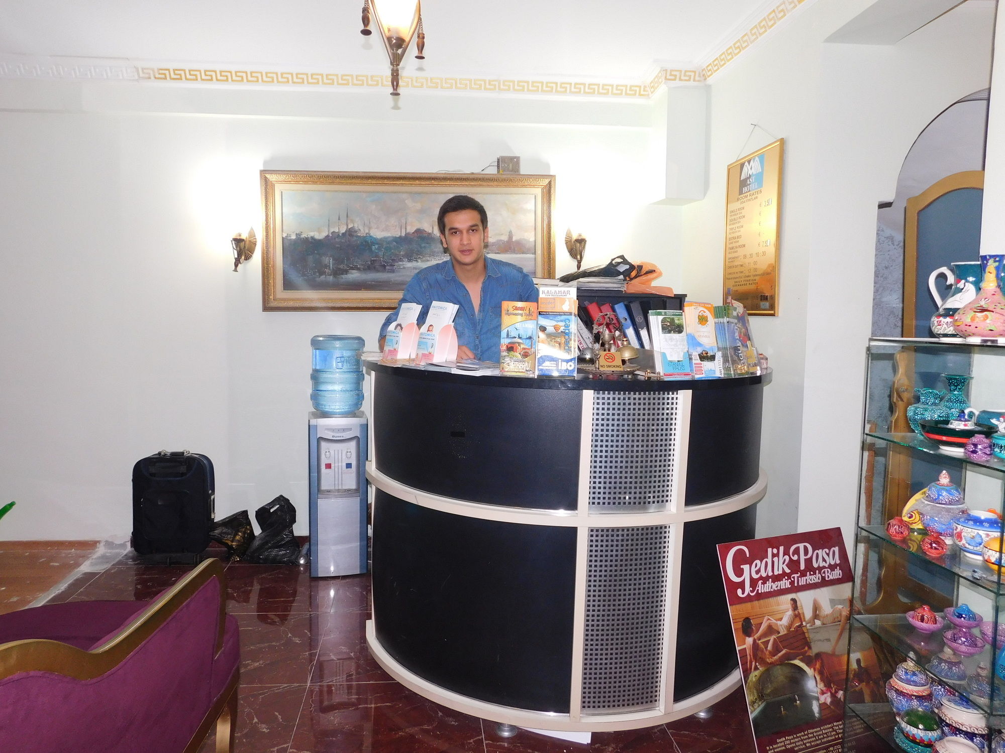 Este hotel se encuentra cerca de Cisterna Basílica y de Gran Bazar. Si te alojas en Ast Hotel, en Estambul (Ciudad vieja), estarás a pocos minutos de Hipódromo y Mezquita Azul.Habitaciones Te sentirás como en tu propia casa en una de las 20 habitaciones con aire acondicionado, frigorífico y televisor LCD. La conexión a Internet wifi gratis te mantendrá en contacto con los tuyos; también podrás ver tu programa favorito en el televisor con canales por satélite. El cuarto de baño está provisto de ducha y secador de pelo. Las comodidades incluyen caja fuerte y escritorio, además de un servicio de limpieza disponible todos los días.Servicios Con una terraza donde descansar y comodidades como conexión a Internet wifi gratis y televisor en zonas comunes, ¡no te faltará de nada!Para comer Tienes un restaurante a tu disposición para comer algo en Ast Hotel.Servicios de negocios y otros Tendrás servicio de recepción 24 horas, caja fuerte en recepción y café en las zonas comunes a tu disposición. Pagando un pequeño suplemento podrás aprovechar prestaciones como servicio de transporte al aeropuerto (ida y vuelta) (disponible las 24 horas) y aparcamiento limitado.