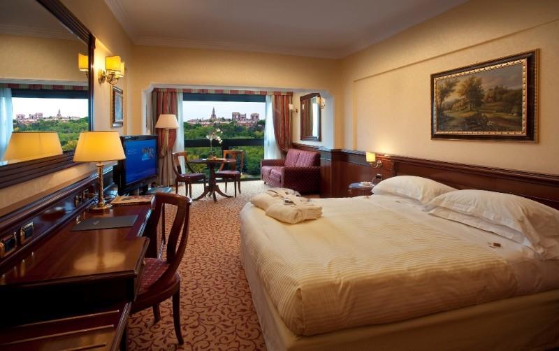 Ubicación - El hotel se halla en una tranquila zona verde, a solo 3 km del Vaticano y del centro urbano. Hay paradas de transporte público a unos 800 m del hotel y la estación de Trastevere queda a unos 3 km. El aeropuerto Leonardo da Vinci-Fiumicino está situado a una distancia aproximada de 25 km del hotel y el aeropuerto de Roma Ciampino queda a unos 35 km.. Instalaciones - El hotel se construyó en el año 1975. Los huéspedes podrán alojarse en una de las 247 habitaciones. Hay disponible un ascensor, mediante el cual es posible acceder a la mayoría de las plantas. Servicios como una caja fuerte y una oficina de cambio ayudan a proporcionar una estancia confortable. Los huéspedes pueden conectarse a Internet en las zonas públicas mediante Wi-Fi (por un cargo extra). En cuanto a opciones gastronómicas, el establecimiento cuenta con un restaurante, un comedor, una sala de desayunos y un bar. En el recinto del alojamiento hay un precioso jardín y un parque infantil. Aquellos que viajen con vehículo propio pueden dejarlo en el aparcamiento del hotel. También hay servicio de habitaciones y una lavandería.. Habitaciones - En las habitaciones hay aire acondicionado, calefacción central y un cuarto de baño. En la mayoría de las habitaciones es posible disfrutar de las vistas desde un balcón. Los huéspedes podrán dormir cómodamente en una cama doble. Se pueden solicitar camas supletorias. Además, hay una caja fuerte y un minibar. El equipamiento se completa con conexión a Internet, un teléfono, un televisor, una radio y Wi-Fi (por un cargo extra). Los cuartos de baño cuentan con una ducha y una bañera. Además, hay un secador de pelo.. Deporte y ocio - El establecimiento ofrece diversas opciones para refrescarse los días de calor, como una piscina y una piscina al aire libre. En el establecimiento también hay una terraza, así como tumbonas y sombrillas disponibles. La bañera de hidromasaje en la zona de baño promete una relajación total. En el bar de piscina se ofrecen bebidas refrescantes. Se ofrecen diversas actividades como, por ejemplo, un gimnasio, un spa, una sauna, un hamam, masajes y un solárium. Comidas - El alojamiento ofrece, como servicio gastronómico, la posibilidad de reservar alojamiento con desayuno, media pensión y pensión completa. Los huéspedes pueden escoger entre desayuno, almuerzo y cena. En cuanto a antojos especiales, el hotel ofrece platos dietéticos.. Tarjetas de crédito - En el establecimiento se aceptan las siguientes tarjetas de crédito: American Express, Visa, Diners Club, JCB y MasterCard..