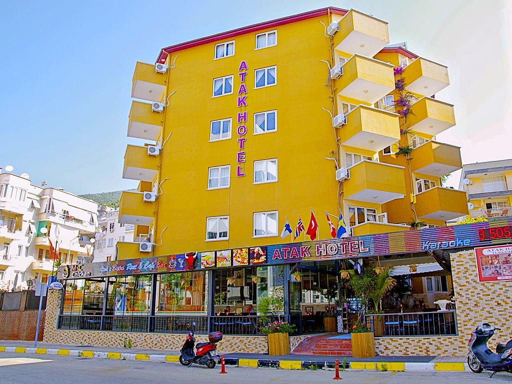 Atak Suit Hotel se encuentra en Alanya cerca de sus calles peatonales, comercios, bares, restaurantes, mercados y discotecas. El centro de la ciudad de Alanya está a 1,5 km, con fácil acceso con el transporte público local dolmus, y el aeropuerto está a unos 130 km del hotel. Las instalaciones y servicios del hotel incluyen recepción 24 horas, vestíbulo con ascensores, sala de TV, restaurante y bar, piscina exterior, piscina infantil, terraza-solarium, snack bar de piscina, zona infantil y jardines. Dispone además de ping-pong y dardos (ambos con cargo adicional). También ofrece programa de de actividades durante el día y entretenimiento nocturno ocasional. Las habitaciones están equipadas con A/C (con cargo adicional), TV, teléfono, caja de seguridad (con cargo adicional) y baño con ducha y secador de pelo (extra). **El concepto de "todo incluido" comprende todas las comidas (desayuno, comida, cena y snacks) y las bebidas en las comidas así como refrescos, cerveza, vino, aguas y bebidas alcohólicas, todas las de marca local.Las bebidas serán servidas desde la mañana hasta la media noche (hasta aproximadamente 22:00 hrs - 24:00 hrs.)Los horarios de apertura varían entre los diferentes hoteles.En determinados hoteles el programa de actividades está también incluido.**** Tenga en cuenta que algunas de las instalaciones anteriores pueden estar cerradas debido a la temporada/condiciones climáticas.**Dirección: Saray Mah. Kızlarpınarı Cad. Otagar Yani, 62, 07400 Alanya, Turkey.