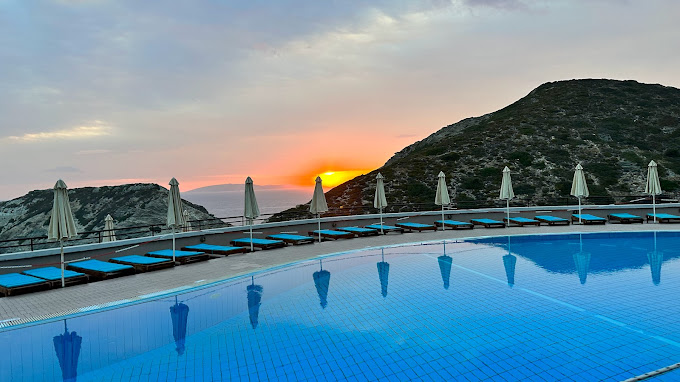 Hotel situado en la coste norte de Creta,en la zona tranquila entre 300 y 600 m de la distancia de pequena bahia de arena.Dispone de un edificio principal y varios bungalows dispuestos en forma de terrazas con u total de 379 habitaciones.Hotel ofrece un hall de entrada con recepcion abierta las 24 horas,ascensores, caja de seguridad,peluqueria, pequenas tiendas, joyeria, mini mercado, bares,restaurante a la carta, climatizado y con zona para no fumadores.Dispone tambien de un club infantil,programa de animacion,2 piscinas con parte separada para ninos,terraza,solarium,sombrillas y tumbonas.
