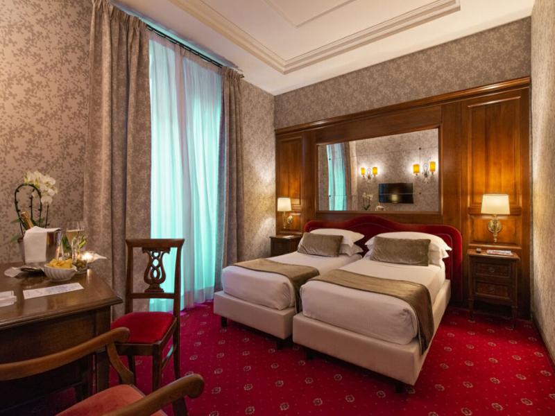 El hotel de 4 estrellas superior Atlante Star Hotel está ubicado en el corazón de Roma, a solo 3 minutos a pie de la Ciudad del Vaticano y del Castillo Sant'Angelo. Recientemente renovado, algunas habitaciones ofrecen vistas panorámicas y bañeras de hidromasaje extragrandes. El elegante mobiliario y la decoración crean un ambiente acogedor. Las habitaciones están equipadas con comodidades modernas, incluyendo bañeras de hidromasaje, acceso a internet, TV vía satélite, aire acondicionado, minibar, secador de pelo y teléfono. Hay wifi gratuito disponible en el vestíbulo. Ten en cuenta que Roma cobra una tasa turística nocturna por persona, que se paga a la llegada. El hotel también ofrece un servicio de traslado gratuito al aeropuerto FCO entre las 7:00 y las 20:00; debes coordinar tu traslado con el conserje un día antes de la salida.