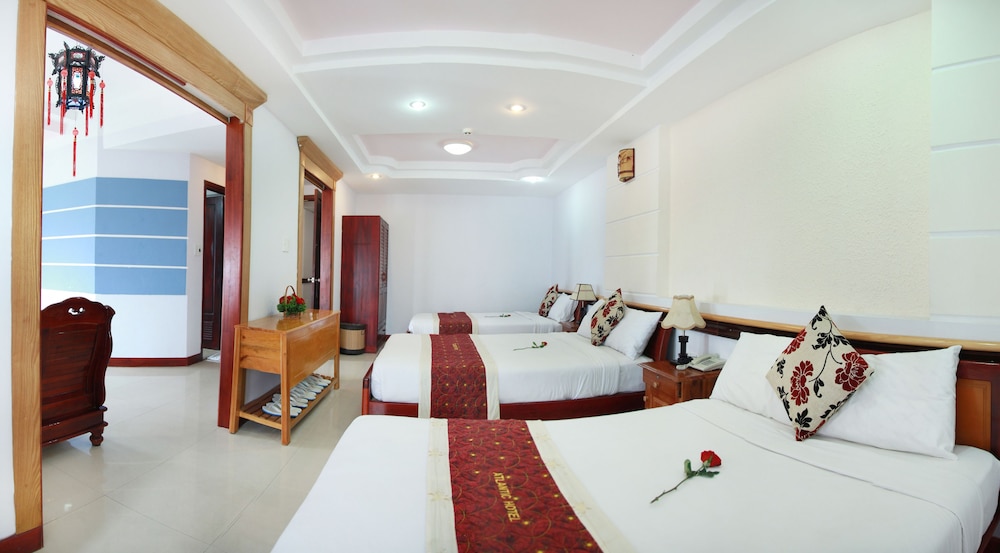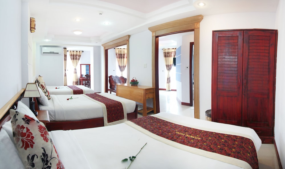En Atlantic Da Nang Hotel gozarás de una buena ubicación en Da Nang, cerca del aeropuerto, desde donde podrás llegar cómodamente a Playa My Khe y Museo de Escultura Cham. Este hotel se encuentra cerca de Puente del Dragón y de Mercado de Han.Habitaciones Te sentirás como en tu propia casa en una de las 30 habitaciones con aire acondicionado y minibar. Para los momentos de ocio, tienes un televisor con canales por cable y conexión a Internet por cable y wifi gratis. El baño privado con bañera o ducha está provisto de artículos de higiene personal de diseño y zapatillas. Las comodidades incluyen escritorio, cortinas opacas y teléfono. Aprovecha los prácticos servicios que se te ofrecen, como conexión a Internet wifi gratis, servicio de niñera (de pago) o tienda de recuerdos o quiosco.Para comer Prueba deliciosos platos sin moverte de este hotel, que cuenta con un restaurante y ofrece servicio de habitaciones las 24 horas.Servicios de negocios y otros Tendrás servicio de tintorería, depósito de equipaje y lavandería a tu disposición. Pagando un pequeño suplemento podrás aprovechar prestaciones como servicio de transporte al aeropuerto (ida y vuelta) (a petición) y servicio de traslado desde la estación de trenes.