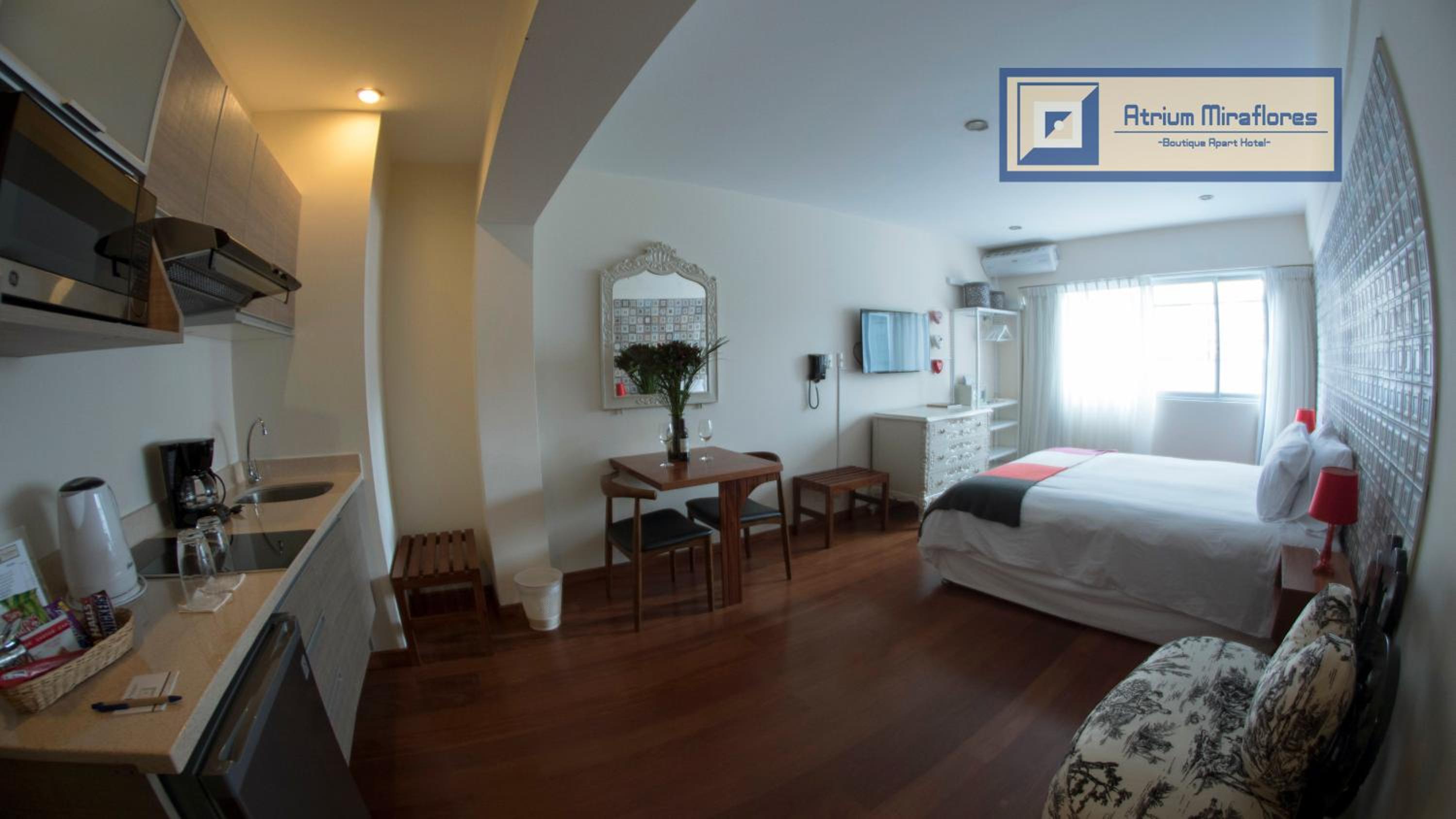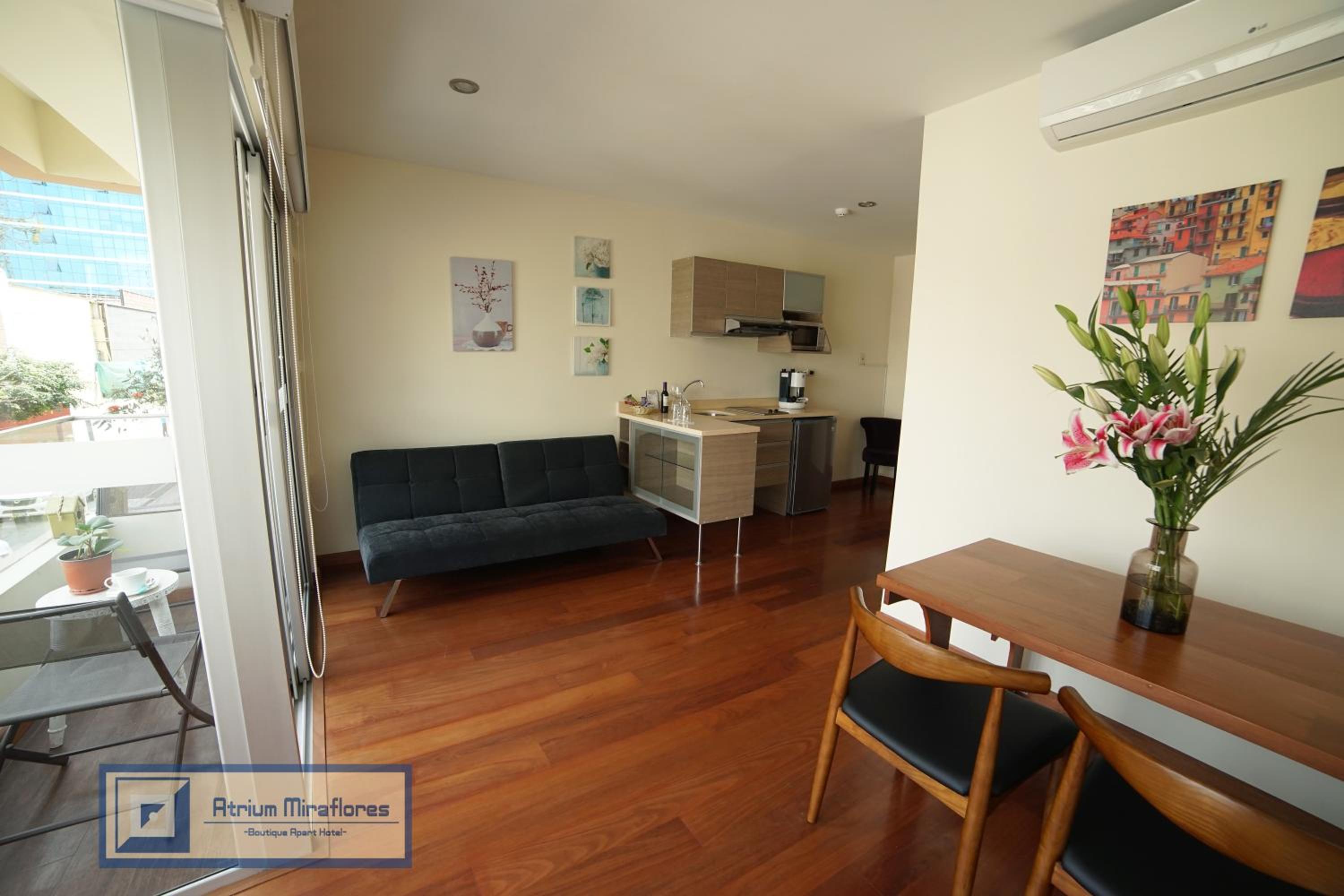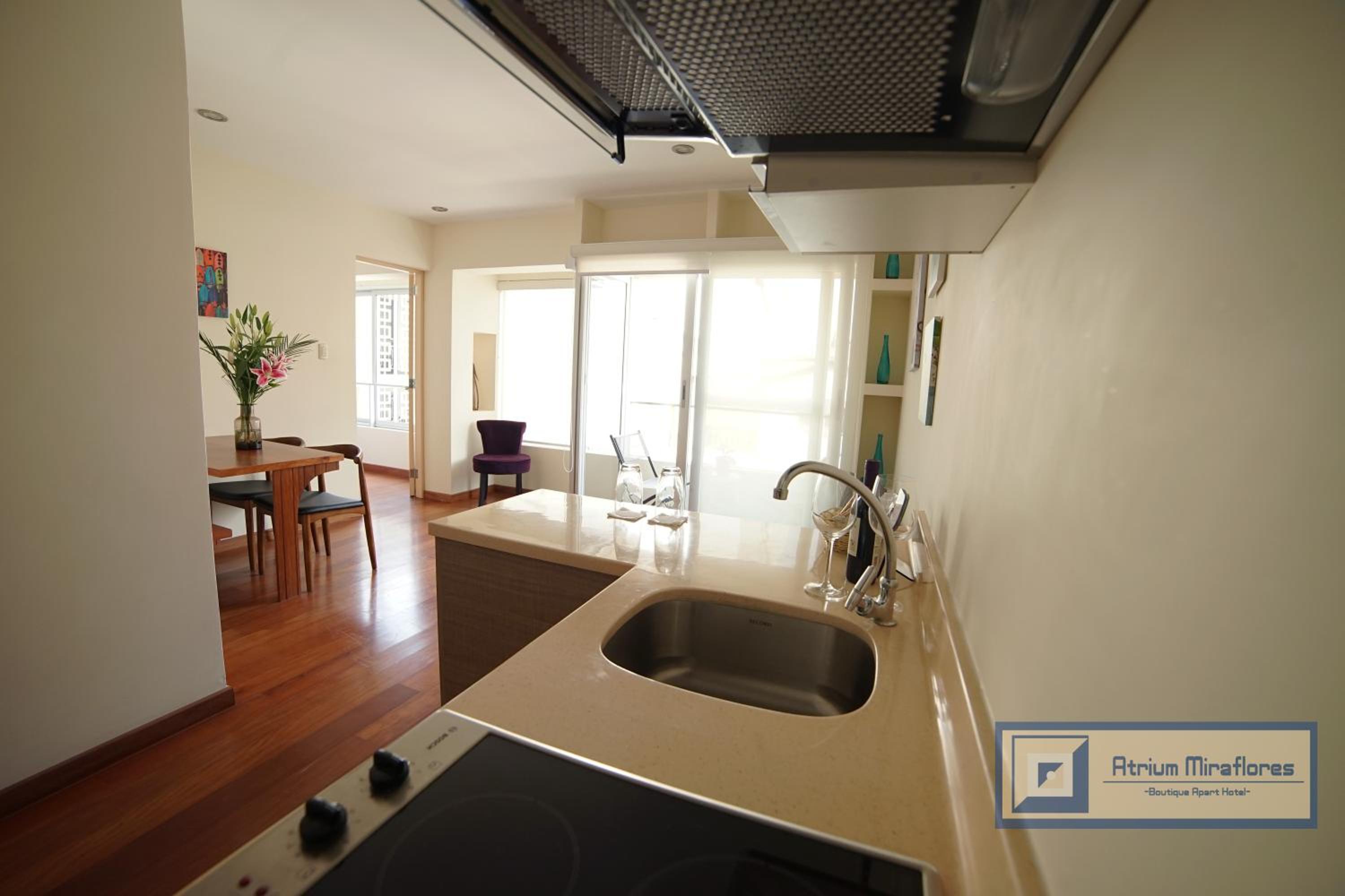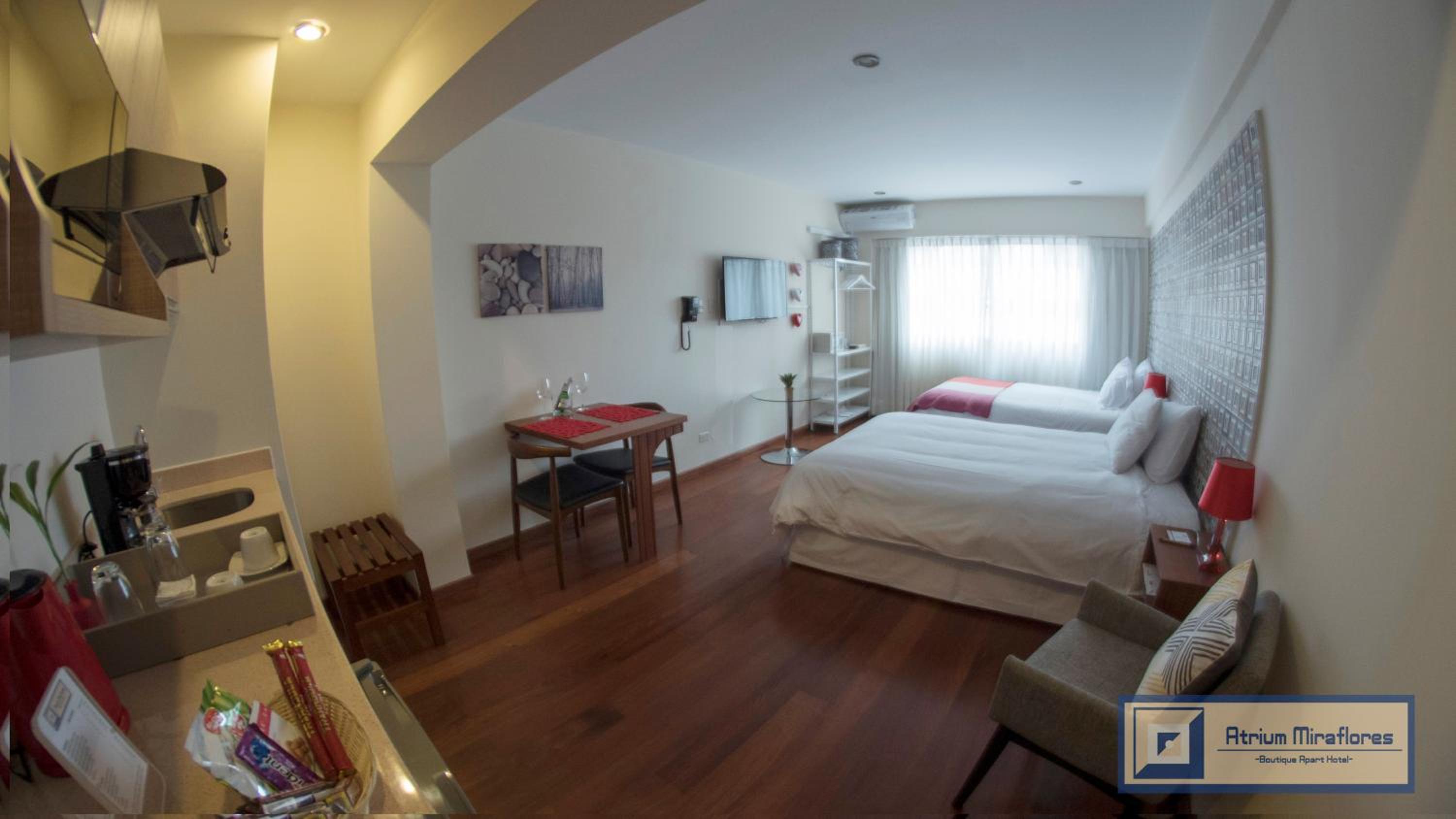 Si te alojas en Atrium Miraflores Boutique Apart Hotel, en Lima (Miraflores), estarás a pocos minutos de Parque Central de Miraflores y Iglesia Virgen Milagrosa. Este aparthotel se encuentra cerca de Parque Kennedy y de Sala Luis Miro Quesada Garland.Habitaciones Reserva una de las 15 habitaciones climatizadas, todas dotadas de cocina básica con microondas y lavavajillas. La conexión a Internet wifi gratis te permite comunicarte con los tuyos, y en tus ratos libres tendrás un televisor de pantalla plana con canales por cable para entretenerte. Las comodidades incluyen caja fuerte, escritorio y teléfono. Con una terraza donde descansar y comodidades como conexión a Internet wifi gratis y servicios de conserjería, ¡no te faltará de nada!Para comer Aprovecha el servicio de habitaciones con horario limitado de este aparthotel. Apaga la sed con tu bebida favorita en el bar o lounge.Servicios de negocios y otros Tendrás check-out rápido, servicio de tintorería y servicio de recepción 24 horas a tu disposición. Pagando un pequeño suplemento podrás aprovechar prestaciones como servicio de transporte al aeropuerto (ida y vuelta) de pago y aparcamiento sin asistencia (de pago).