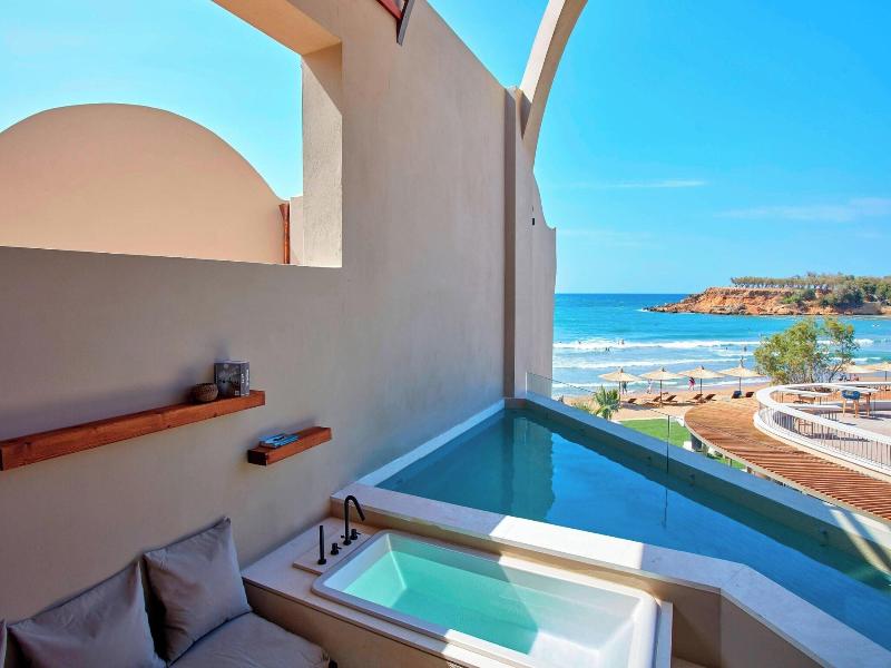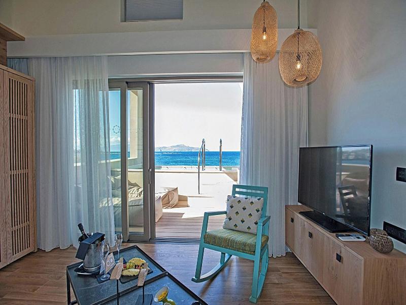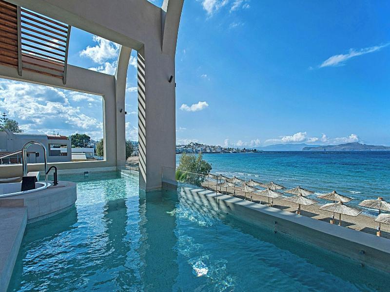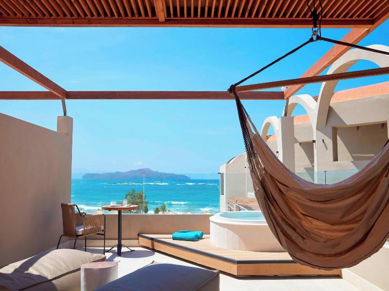 Si decides alojarte en Domes Noruz Chania, Autograph Collection - Adults Only, disfrutarás de una fantástica ubicación en pleno centro de La Canea, a menos de cinco minutos a pie de Sunset Beach y Playa de Agioi Apostoloi. Además, este hotel de lujo se encuentra a 5, 9 km de Playa de Agia Marina y a 6, 3 km de Antiguo puerto veneciano. . Relájate en el spa completo, que ofrece masajes, tratamientos corporales y tratamientos faciales. La diversión está asegurada en este alojamiento, que ofrece 2 piscinas al aire libre, un baño turco y un gimnasio. Encontrarás también servicios de conserjería, una televisión en la zona común y un salón de fiestas. . Te sentirás como en tu propia casa en cualquiera de las 83 habitaciones con minibar y televisión de plasma. Para los momentos de ocio, tienes una por satélite. El baño privado está provisto de artículos de higiene personal de diseño y secadores de pelo. Entre las comodidades, se incluyen caja fuerte, escritorio y teléfono. . Cuando quieras almorzar o cenar, solo tienes que pasarte por Zeen, un restaurante especializado en cocina europea moderna. El alojamiento también cuenta con 2 cafeterías y con un servicio de habitaciones con horario limitado. Disfruta de un detalle de bienvenida gratuito organizado por la recepción, donde podrás conocer a otros huéspedes mientras tomas un bocado. Relájate con un refresco del bar junto a la piscina o de uno de los 2 bares con salón. Se ofrece un desayuno bufé todos los días de 07:00 a 11:00 con un coste adicional. . Tendrás check-in exprés, tintorería y un servicio de recepción las 24 horas a tu disposición. Pagando un pequeño suplemento podrás aprovechar prestaciones como servicio de transporte al aeropuerto (ida y vuelta) disponible 24 horas y aparcamiento con asistencia gratuito. . Las distancias se expresan en números redondos.