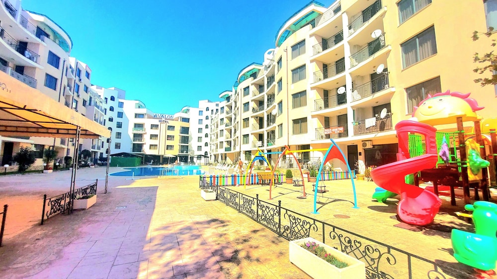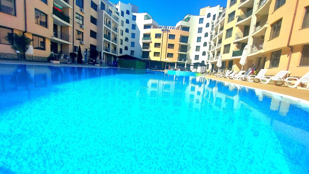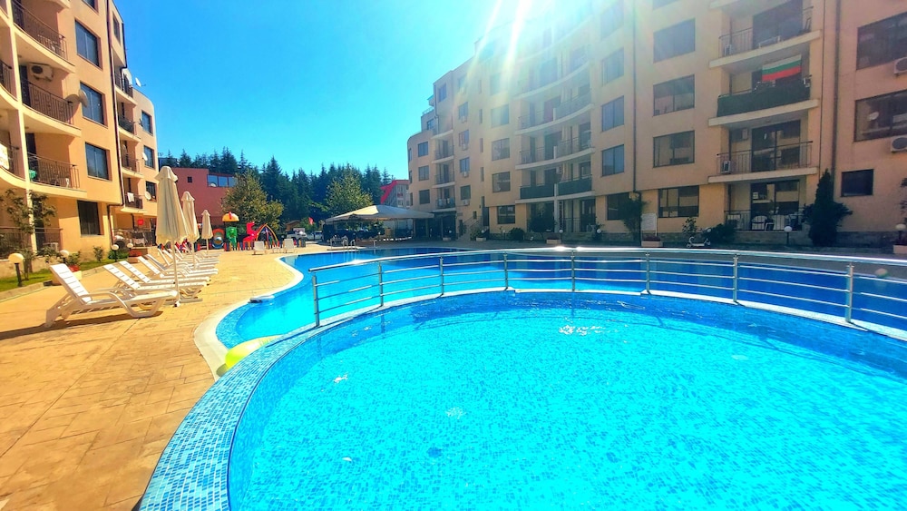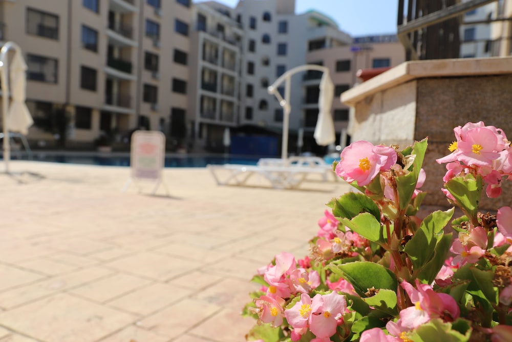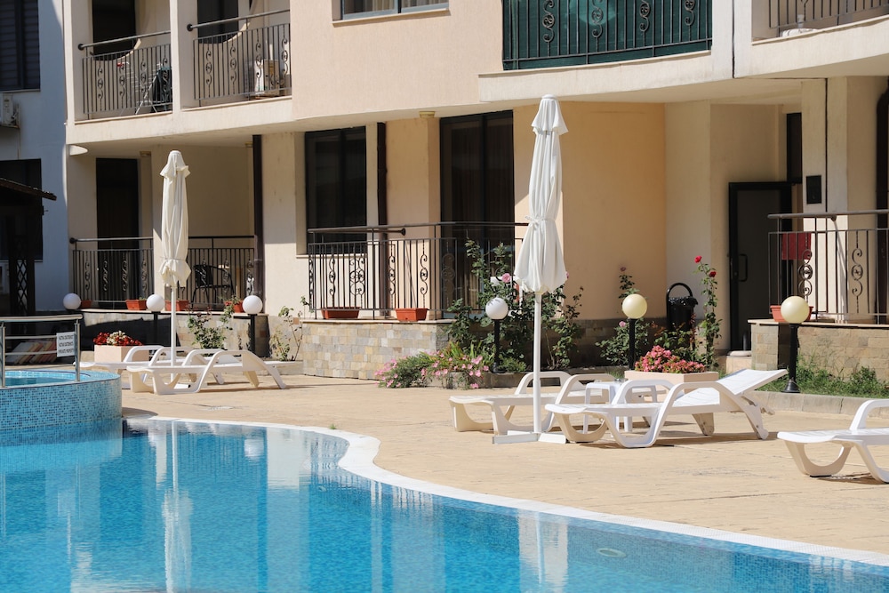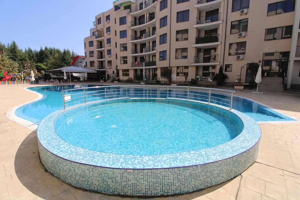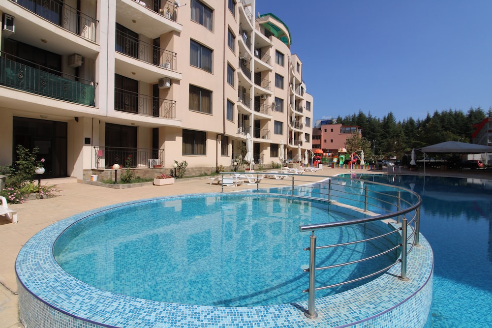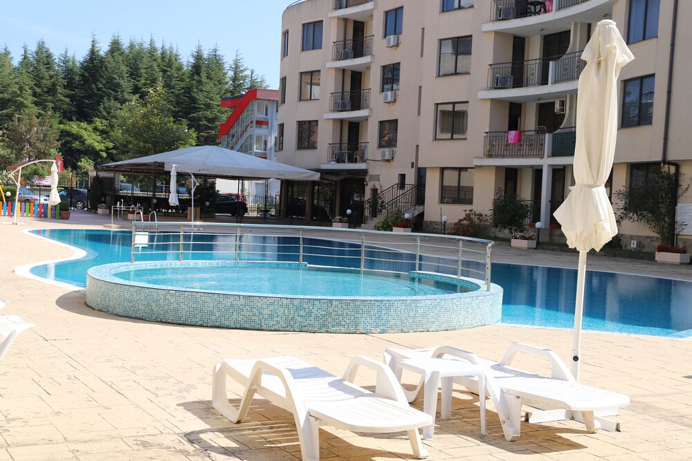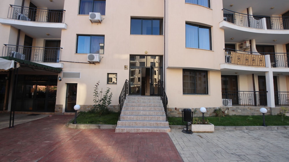 Facilities and services include an outdoor swimming pool, children’s pool, restaurant, bar, elevator, safety box at the reception (extra charge), wireless Internet access, room service, parking (extra charge) and 24-hour reception.Rooms are equipped with air conditioning, TV, telephone, hairdryer, wireless Internet (extra charge) and balcony/terrace.In case of choosing the option of "all inclusive":The All Inclusive-concept includes all meals (breakfast, lunch, dinner and snacks) and mealtime drinks such as soft drinks, beer, wine, water and alcoholic drinks, all of local brands. Drinks are served from morning until late evening (approx until 22.-24.00 hrs). Opening times vary between different hotels. In certain hotels the activities program is also included.** Please note that some of the above facilities may be closed due to weather / seasonal conditions.Address: Sunny Beach, 8240 Sunny Beach, Bulgaria.