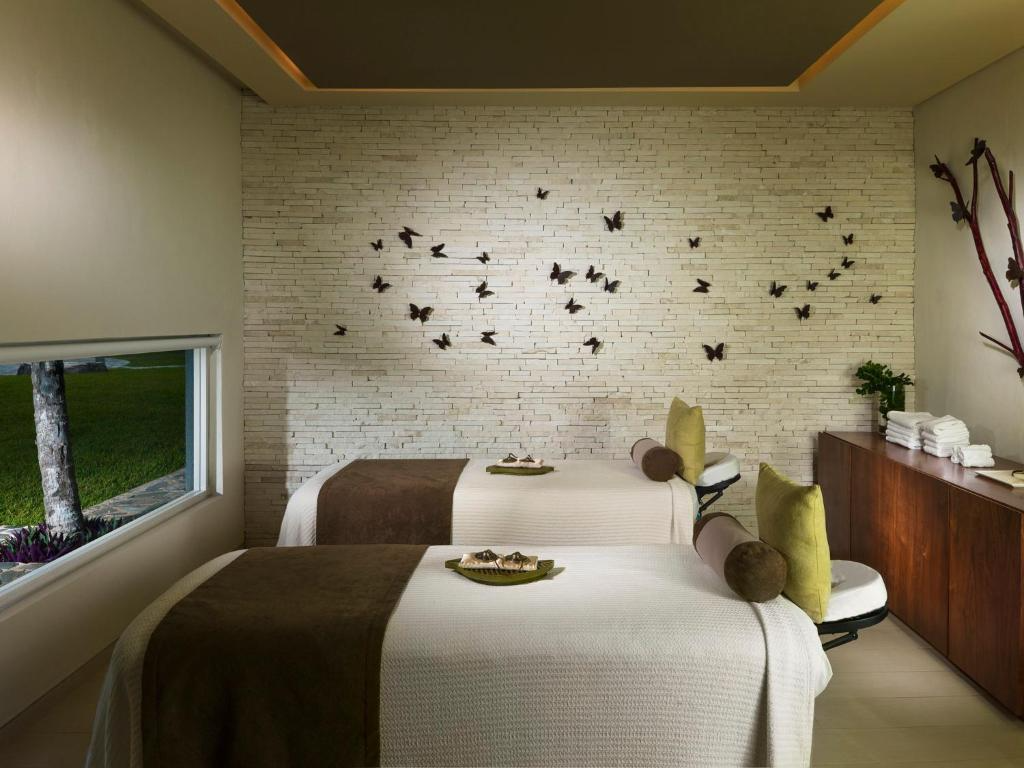 Relájese y descansa en una espectacular y espaciosa villa diseñada por un gran arquitecto en Cancún. Disfruta del lujo de tener acceso privado a la playa, experiencias rejuvenecedoras en el spa, tu propio cine en casa, sauna, baño turco y mucho más. Escápate a este encantador refugio y redefine tu percepción del paraíso. Azul Villa Esmeralda te ofrece impresionantes vistas al mar y los servicios personalizados de un mayordomo, chef, ama de llaves, camarero, encargado del club infantil, jardinero, encargado de la piscina, guardias de seguridad las 24 horas y masajista opcional.
