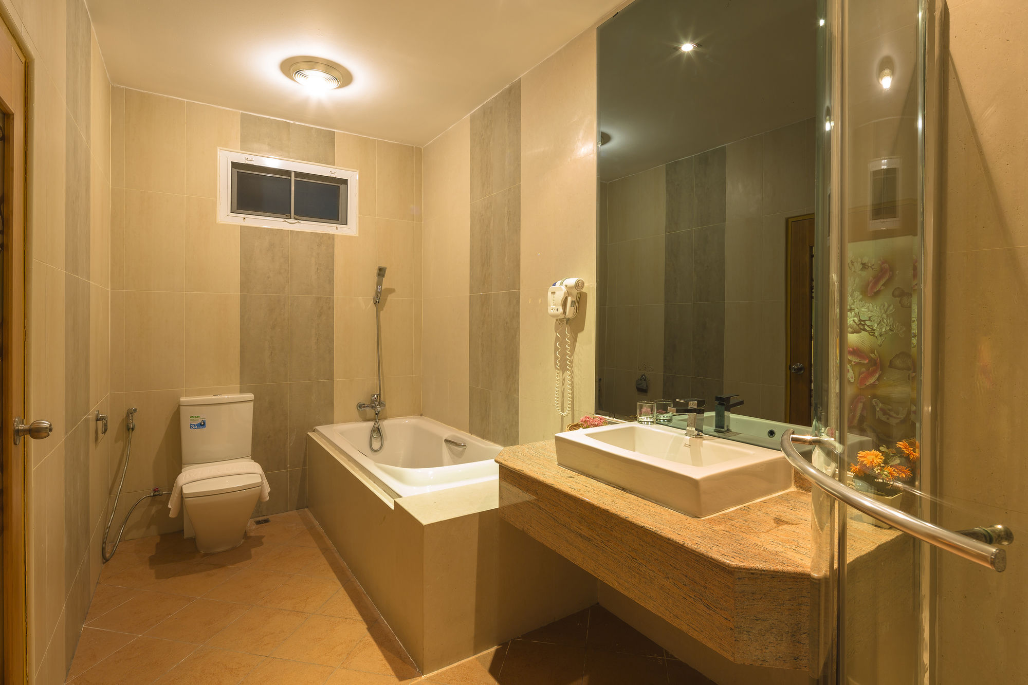 Si eliges Azure Phuket Hotel en Patong, estarás a pocos minutos de Simon Cabaret y en las inmediaciones de Playa Patong. Este hotel se encuentra cerca de Centro comercial Jungceylon y de Calle Bangla Night. Te sentirás como en tu propia casa en cualquiera de las 83 habitaciones con aire acondicionado y minibar. Las habitaciones disponen de balcón o patio. La conexión a Internet wifi gratis te mantendrá en contacto con los tuyos; también podrás ver tu programa favorito en el televisor con canales por cable. El baño privado con ducha está provisto de artículos de higiene personal gratuitos y secador de pelo. Aprovecha los prácticos servicios que se te ofrecen, como conexión a Internet wifi gratis o servicios de conserjería. Si tienes hambre, pasa por el restaurante de este hotel, que ofrece desayunos, almuerzos y cenas o utiliza el servicio de habitaciones con horario limitado. Tendrás servicio de tintorería, servicio de recepción 24 horas y caja fuerte en recepción a tu disposición. Hay un aparcamiento sin asistencia gratuito disponible.