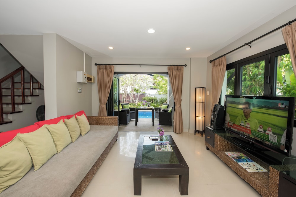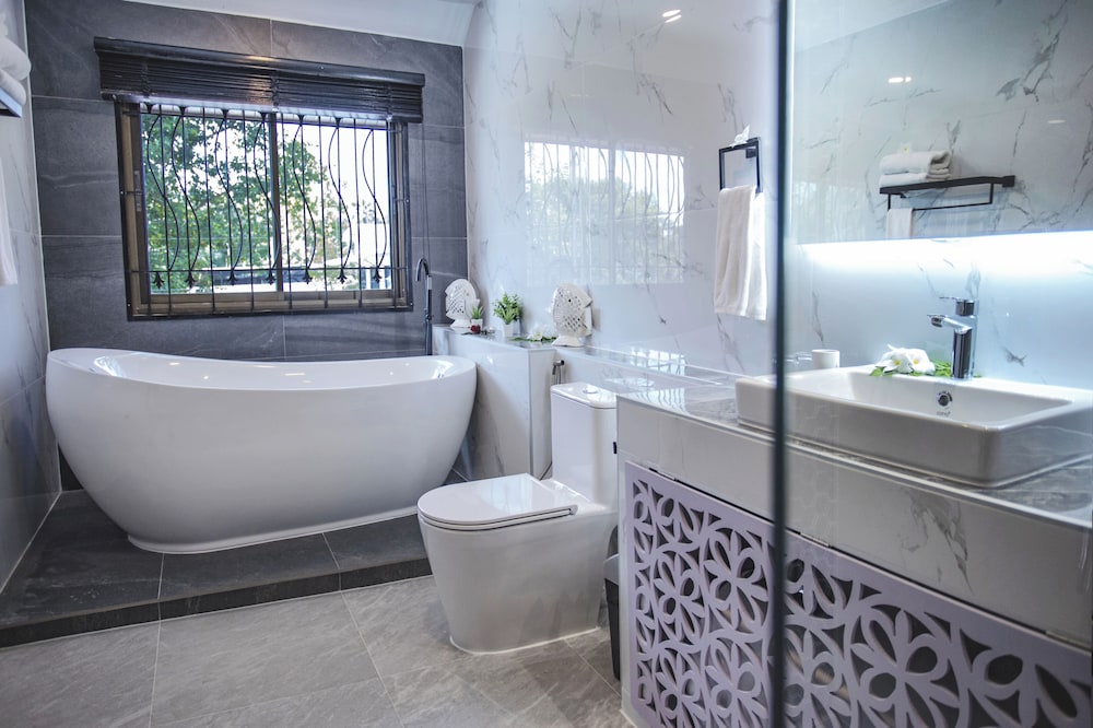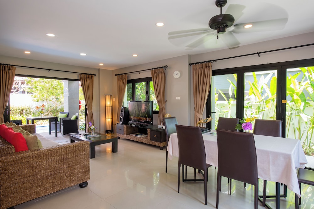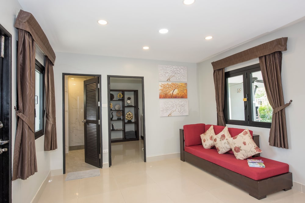 Esta villa se sitúa en Krabi, a poca distancia de Montaña Spirit y de Playa Ao Nang. Esta villa de 4 estrellas se encuentra muy cerca de Estadio de Boxeo Ao Nang Krabi y Nopparat Thara Beach. Disfruta de una estancia fabulosa en una de las habitaciones climatizadas, todas equipadas con piscina privada y televisor de pantalla plana. Las habitaciones disponen de patio. La cocina está equipada con frigorífico/congelador grande, horno y placa de cocina. La televisión con canales por cable y reproductor de DVD es ideal para entretenerse, y gracias a la conexión a Internet wifi gratis no perderás el contacto con el resto del mundo. El cuarto de baño con bañera y ducha independientes está provisto de bañera profunda y cabezal de ducha tipo lluvia. Con una terraza y jardín donde descansar y comodidades como conexión a Internet wifi gratis, ¡no te faltará de nada! La recepción tiene un horario limitado. Pagando un pequeño suplemento podrás aprovechar prestaciones como servicio de transporte al aeropuerto (ida y vuelta) (disponible las 24 horas) y aparcamiento sin asistencia gratuito.
