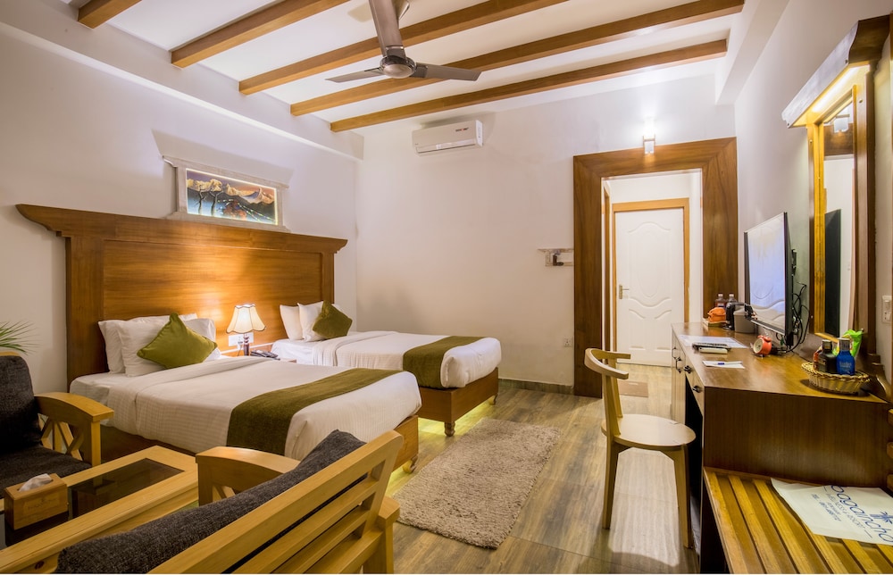 Si eliges Bagaincha Wellness Resort en Pojara, estarás a pocos minutos de Palacio Ratna Mandir y en las inmediaciones de Templo de Barahi. Este hotel se encuentra cerca de Phewa Tal y de Stupa de la Paz Mundial. Te sentirás como en tu propia casa en cualquiera de las 10 habitaciones con aire acondicionado y televisor LED. La conexión a Internet wifi gratis te mantendrá en contacto con los tuyos; también podrás ver tu programa favorito en el televisor con canales digitales. El cuarto de baño está provisto de ducha y artículos de higiene personal gratuitos. Entre las comodidades, se incluyen escritorio, además de un servicio de limpieza disponible todos los días. Con piscina al aire libre y muchas otras instalaciones recreativas a tu disposición, no te quedará ni un minuto libre. Tienes también jardín donde sentarte a contemplar el paisaje. Se ofrece además conexión a Internet wifi gratis y servicios de conserjería. Prueba deliciosos platos sin moverte de este hotel, que cuenta con un restaurante y ofrece servicio de habitaciones con horario limitado. Apaga la sed con tu bebida favorita en el bar o lounge. Tendrás servicio de recepción 24 horas y depósito de equipaje a tu disposición. Hay un aparcamiento sin asistencia gratuito disponible.