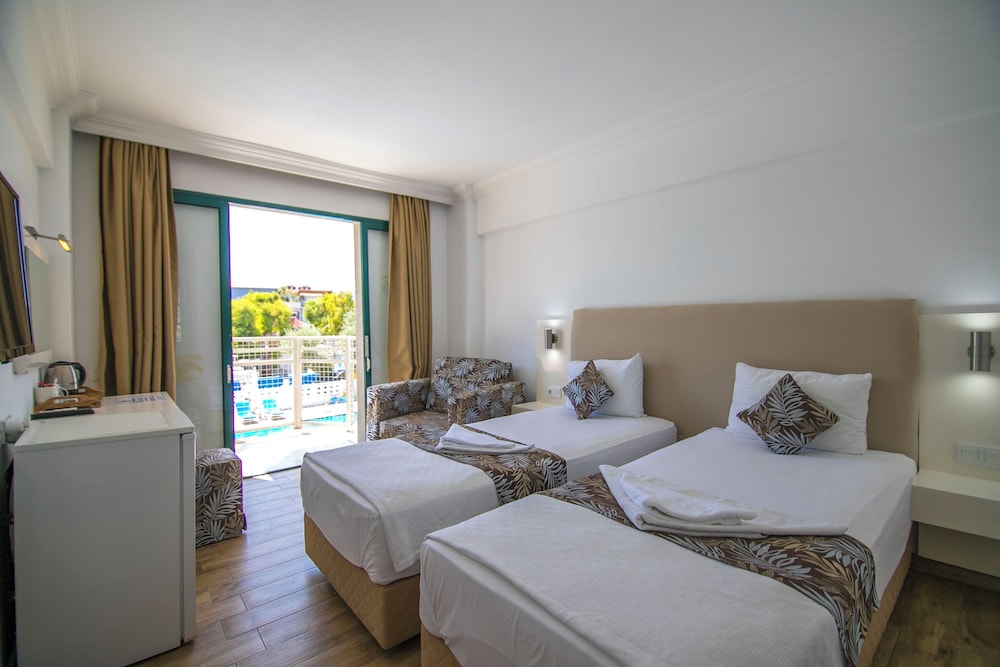 Este lugar comprende 34 habitaciones con un mini bar, teléfono y un baño. Los invitados pueden hacer uso de una ducha, un secador de peloLas instalaciones y los servicios incluyen recepción las 24 horas, restaurante, bar, piscina al aire libre, acceso inalámbrico a Internet y estacionamiento. Las habitaciones cuentan con aire acondicionado, TV, teléfono, seguro (carga adicional), secador de pelo y balcón.Las habitaciones cuentan con aire acondicionado, TV, teléfono, seguro (carga adicional), secador de pelo y balcón.** Tenga en cuenta que algunas de las instalaciones anteriores pueden estar cerradas debido a las condiciones climáticas / estacionales.Dirección: Foca Mahallesi, 1078 Sokak, Calis Beach, 48300, Fethiye, Mugla, Turquía.