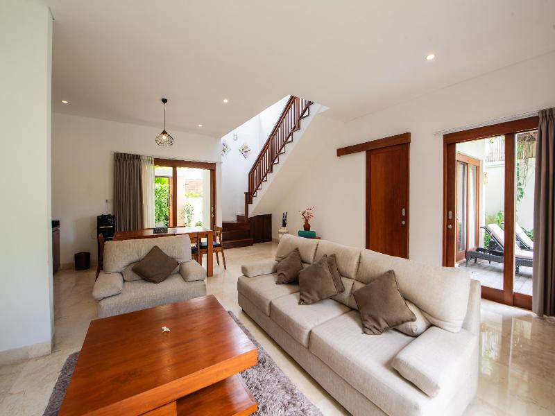 Eramos 5 amigos y alquilamos una villa de tres habitaciones con piscina privada. Las habitaciones estupendas y limpias al igual que los baños.