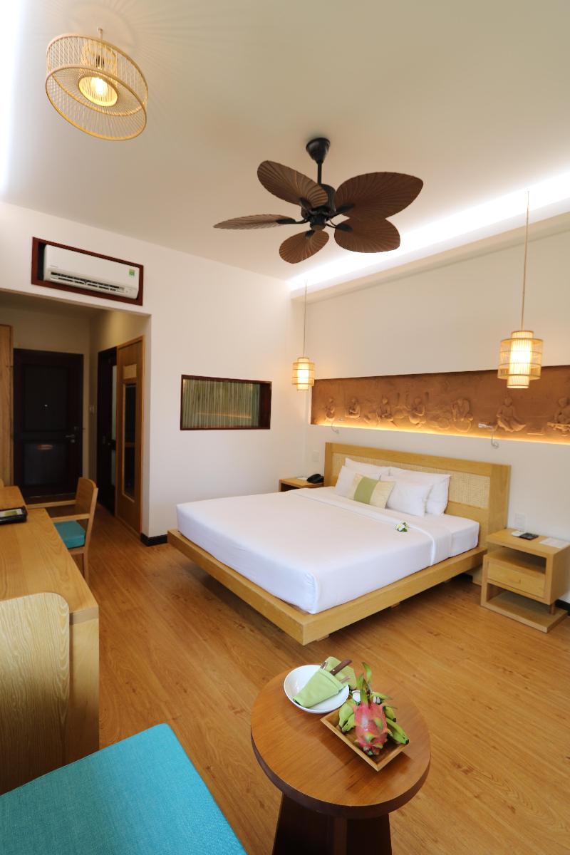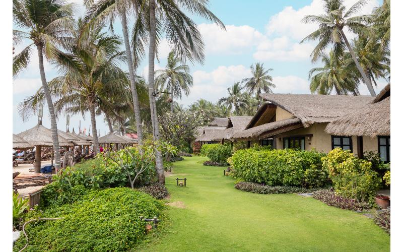 El resort se encuentra directamente en la playa, en el corazón de las tranquilas comunidades de resort y a unos diez kilómetros del centro de la ciudad. En la zona se pueden encontrar varias reliquias históricas, atracciones naturales como dunas, lagos, cañones y pueblos pesqueros primitivos. Los huéspedes tienen acceso a la red de autobuses. El hotel está a 200 km al norte de Ho Chi Minh y a solo unas horas en coche del Aeropuerto Internacional de Tan Son Nhat (aproximadamente a 200 km). Desde 1998, este resort de playa ofrece 136 habitaciones y bungalows de lujo, y una amplia gama de servicios de estándares internacionales, en particular el spa, un club de salud y belleza considerado entre los mejores del país. Renovado en 2009, el establecimiento presenta un estilo único con todas las estructuras tradicionales de techo de paja, comodidades exclusivas y de vanguardia en un ambiente costero. Es perfecto para retiros en la naturaleza. Las instalaciones incluyen un vestíbulo con recepción 24 horas y servicio de salida, caja fuerte, servicio de cambio de divisas, ascensor y peluquería. Los más pequeños se divertirán en la sala de juegos y en el parque infantil, agradable y seguro. Los huéspedes pueden cenar en la cafetería o en el restaurante y disfrutar de su bebida favorita en el bar. Los viajeros de negocios apreciarán las instalaciones para conferencias. Además, se ofrece acceso a Internet, servicio de habitaciones y lavandería, y aparcamiento. Los huéspedes disfrutarán de una elegante comodidad y una romántica privacidad en medio de la tranquilidad tropical de su habitación. Todas las habitaciones tienen techo de paja y balcón privado. Las habitaciones ofrecen vistas directas al mar o al jardín/piscina. Están totalmente equipadas con aire acondicionado regulable, ventilador, caja fuerte y minibar. El baño privado incluye ducha, bañera y secador de pelo. Todas las instalaciones de cama y baño son de la más alta calidad.