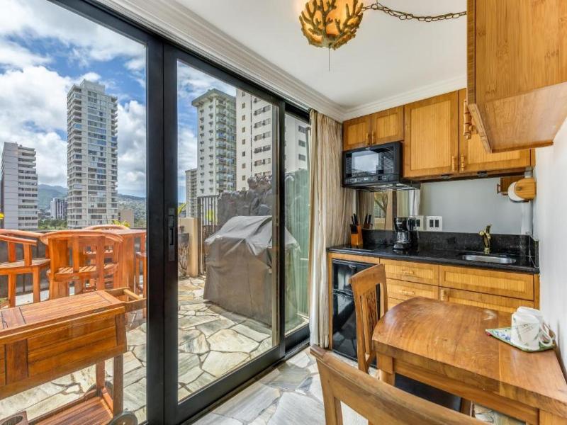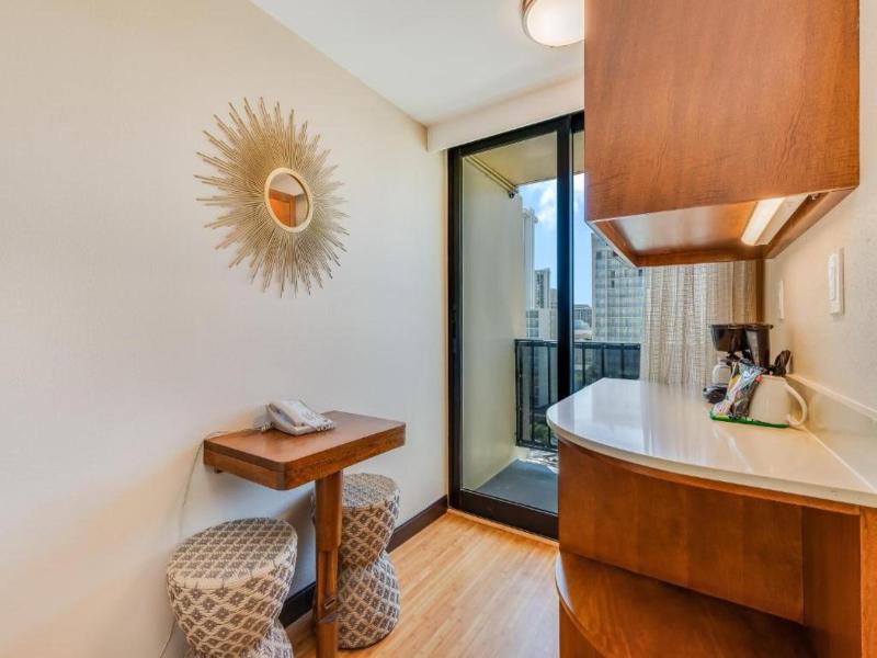 Un buen lugar para visitar Honolulu. Habitación amplia, equipada con aire acondicionado, mini bar, cocina americana, baño con ducha. A 5 min. de la playa de Waikiki. Wifi gratuita, buena atención...