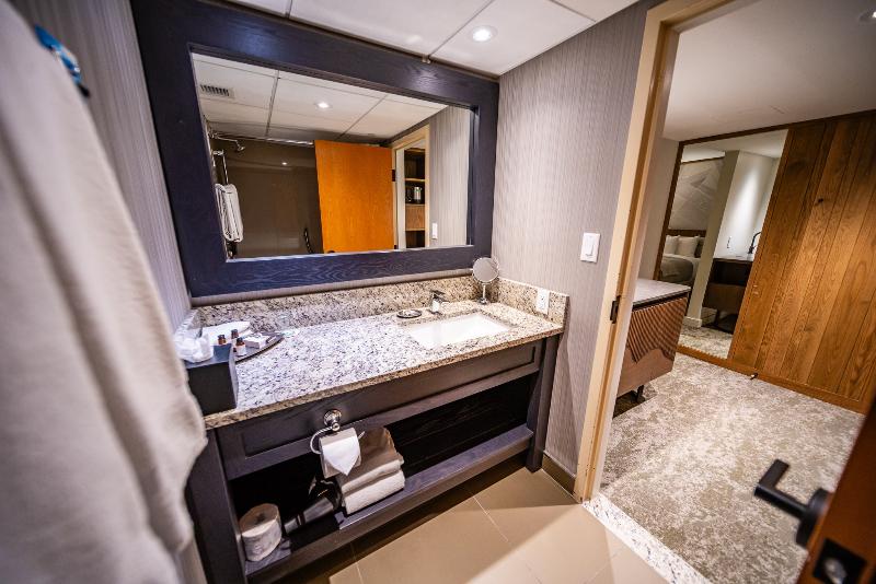 El Banff Park Lodge Resort Hotel and Conference Centre es un hotel con todos los servicios ubicado en el centro de Banff, en el corazón del histórico Banff National Park. Las 211 espaciosas habitaciones están decoradas con buen gusto e incluyen cafeteras y teteras, televisión por cable con películas de pago por evento, radio reloj, teléfono con puerto de datos y sistema de correo de voz, secador de pelo, plancha y tabla de planchar, climatización individual y balcón privado. Las habitaciones tienen dos camas dobles y pueden alojar hasta cuatro personas. El hotel ofrece dos excelentes restaurantes, un salón de cócteles, una piscina cubierta de agua salada, jacuzzi y baño de vapor, estacionamiento interior con calefacción, una zona comercial, servicio de conserjería las 24 horas, servicio de valet parking y muchos otros servicios. El Banff Park Lodge recibió la calificación 'Four Green Leaf' de 2002 por sus programas ambientales; el primer hotel independiente de Canadá en lograr esta distinción. ¡Se avecinan novedades emocionantes en Banff Park Lodge! Comenzaremos nuestra transformación el 15 de marzo de 2024, empezando por el Cascade Wing. Las mejoras continuarán hasta mediados de junio, creando espacios acogedores y refinados para tu comodidad y disfrute. Si bien estamos mejorando el hotel para tus futuras estancias, nos comprometemos a garantizar tu comodidad durante este proceso. Estamos tomando medidas cuidadosas para minimizar las interrupciones y trabajaremos activamente para asignarte habitaciones lejos de las actividades de renovación siempre que sea posible. Si experimentas algún ruido o un aumento de la actividad durante tu estancia, te pedimos disculpas sinceramente por las molestias. Por favor, informa a nuestro equipo de atención al cliente; estamos aquí para atender rápidamente tus necesidades con un espacio más tranquilo u ofrecerte mayor flexibilidad en tu reserva.